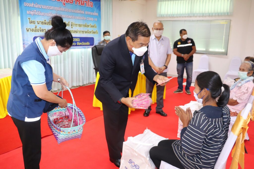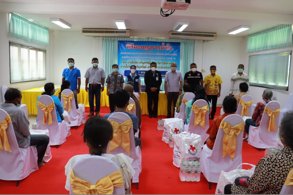 วันที่ 1 พฤษภาคม 2563 นายลือชัย เจริญทรัพย์ ผู้ว่าราชการจังหวัดตรัง พร้อมด้วย นางเอื้อจิตร เจริญทรัพย์ นายกเหล่ากาชาดจังหวัดตรัง มอบชุดธารน้ำใจ สภากาชาดไทย