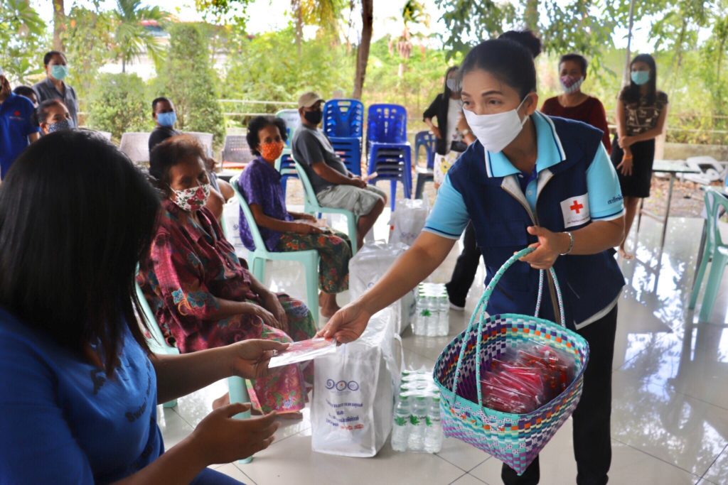วันที่ 1 พฤษภาคม 2563 นางเอื้อจิตร เจริญทรัพย์ นายกเหล่ากาชาดจังหวัดตรัง มอบชุดธารน้ำใจ สภากาชาด ไทย เพื่อช่วยเหลือผู้ที่กักตัว 14 วัน และได้รับความเดือดร้อน