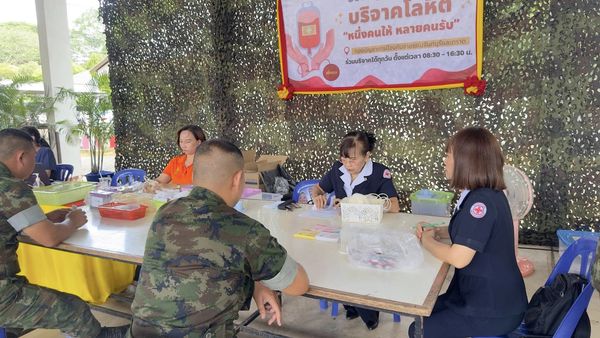 วันพฤหัสบดีที่ 25 เมษายน 2567 นางวารุณี ไพศาลธนวัฒน์ นายกเหล่ากาชาดจังหวัดจันทบุรี มอบหมายให้คณะกรรมการ/ที่ปรึกษา และสมาชิกเหล่ากาชาดจังหวัดจันทบุรี ร่วมกับกองบัญชาการป้องกันชายแดนจันทบุรีและตราด และศูนย์รับบริจาคโลหิตโรงพยาบาลพระปกเกล้าจันทบุรี ร่วมรับบริจาคโลหิตเคลื่อนที่ ณ กองบัญชาการป้องกันชายแดนจันทบุรีและตราด (ค่ายตากสิน) จังหวัดจันทบุรี มีผู้ให้ความสนใจ มารับการบริจาคโลหิตเป็นจำนวนมาก ซึ่งในวันนี้มีผู้บริจาคโลหิตทั้งหมดจำนวน 46 ราย จำนวนโลหิต 20,700 cc มีผู้บริจาคดวงตา จำนวน 12 ราย มีผู้บริจาคอวัยวะ จำนวน 12 รายและมีผู้บริจาคร่างกาย จำนวน 1 ราย