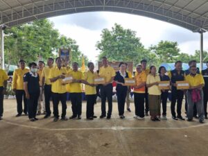 วันที่ 10 กรกฎาคม 2567 นางกุลทรัพย์ ชื่นโกสุม นายกเหล่ากาชาดจังหวัดนครราชสีมา พร้อมด้วยคณะกรรมการและสมาชิกเหล่ากาชาดกิ่งอำเภอบัวลาย ร่วมเปิดโครงการจังหวัดเคลื่อนที่ ”บำบัดทุกข์ บำรุงสุข สร้างรอยยิ้มให้ประชาชน” พร้อมทั้งมอบถุงยังชีพให้กับประชาชน โดยมีหน่วยงานต่างๆ ทั้งภาครัฐและเอกชนเข้าร่วม โดยมี นายชัยวัฒน์ ชื่นโกสุม ผู้ว่าราชการจังหวัดนครราชสีมา / ที่ปรึกษาเหล่ากาชาดจังหวัดนครราชสีมา เป็นประธานในพิธี ณ โรงเรียนหนองแวงสุวิทย์ ตำบลหนองหว้า อำเภอบัวลาย จังหวัดนครราชสีมา