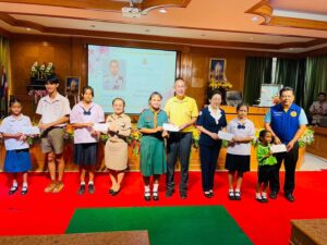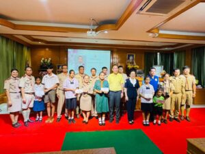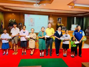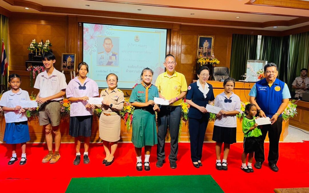 วันที่ 10 กรกฎาคม 2567 นายชัยวัฒน์ ชื่นโกสุม ผู้ว่าราชการจังหวัดนครราชสีมา พร้อมด้วยนางกุลทรัพย์ ชื่นโกสุม นายกเหล่ากาชาดจังหวัดนครราชสีมา สมาชิกเหล่ากาชาดอำเภอขามสะแกแสง มอบทุนการศึกษาให้กับนักเรียนที่เรียนดีแต่ยากจน ให้กับนักเรียนในพื้นที่อำเภอขามสะแกแสง จำนวน 5 ทุน ทุนละ 5,000 บาท รวมเป็นจำนวนเงินทั้งสิ้น 25,000 บาท ณ โรงเเรียนบ้านขามสะแกแสง อำเภอขามสะแกแสง จังหวัดนครราชสีมา
