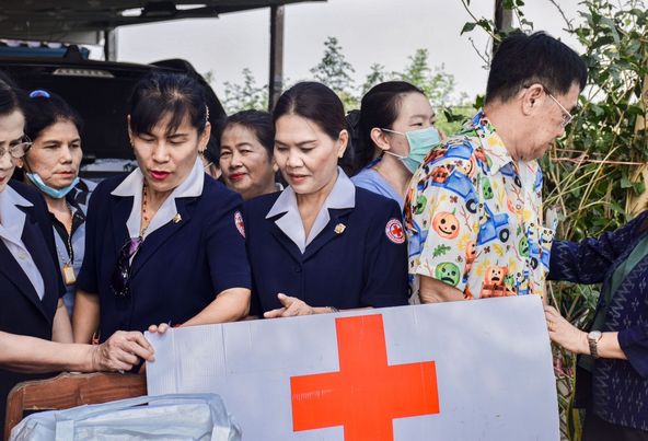 วันพุธที่ 7 กุมภาพันธ์ พ.ศ. 2567 นางพัทธานันท์ ยังตรง นายกเหล่ากาชาดจังหวัดฉะเชิงเทรา ประธานแม่บ้านมหาดไทยจังหวัดฉะเชิงเทรา มอบหมายให้ นางทัศนีย์ ตรีรัตนนุกูล นายกกิ่งกาชาดอำเภอบางคล้า/สมาชิกชมรมแม่บ้านมหาดไทยจังหวัดฉะเชิงเทรา พร้อมคณะกรรมการสมาชิกกิ่งกาชาดอำเภอบางคล้า พร้อมด้วยนายกองค์การบริหารส่วนตำบล กำนัน ผู้ใหญ่บ้าน อสม. ร่วมจัดโครงการช่วยเหลือผู้ด้อยโอกาสในสังคม เฉลิมพระเกียรติ เทิดไท้องค์ราชัน พระบาทสมเด็จพระปรเมนทรรามาธิบดีศรีสินทรมหาวชิราลงกรณ พระวชิรเกล้าเจ้าอยู่หัว เฉลิมพระชนมพรรษา ครบ 6 รอบ” เพื่อส่งมอบชุดธารน้ำใจ สภากาชาดไทย จำนวน 4 ชุด ให้แก่ผู้ป่วย ผู้พิการ ผู้ยากไร้ ในพื้นที่ ตำบลเสม็ดใต้และตำบลเสม็ดเหนือ อำเภอบางคล้า จังหวัดฉะเชิงเทรา