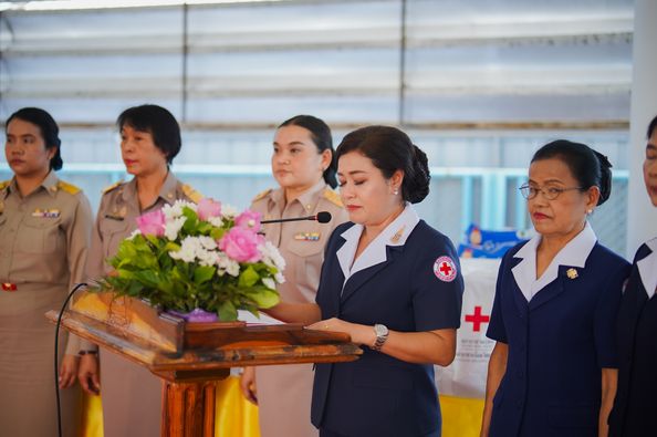 นางวาทิณี โฆษาศิวิไลซ์ นายกเหล่ากาชาดจังหวัดบุรีรัมย์ พร้อมด้วย คณะกรรมการและสมาชิกเหล่ากาชาดจังหวัดบุรีรัมย์ ร่วมกิจกรรมโครงการน้ำพระทัยพระราชทานส่วนภูมิภาค สภาสังคมสงเคราะห์ฯ 77 จังหวัด ประจำปี 2567