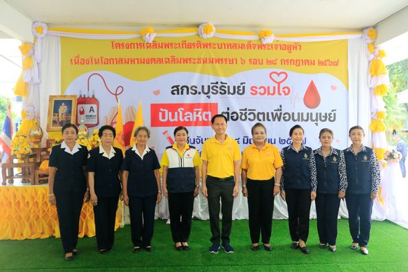 วันจันทร์ ที่ 24 มิถุนายน 2567 ณ ห้องประชุมภูกระโดง สำนักงานส่งเสริมการเรียนรู้จังหวัดบุรีรัมย์ นางวาทิณี โฆษาศิวิไลซ์ นายกเหล่ากาชาดจังหวัดบุรีรัมย์ พร้อมด้วยคณะกรรมการ สมาชิกเหล่ากาชาดจังหวัดบุรีรัมย์ สมาชิกสมาคมแม่บ้านมหาดไทยจังหวัดบุรีรัมย์ ร่วมกับคลังเลือดโรงพยาบาลบุรีรัมย์ โดยมี นายปิยะ ปิจนำ รองผู้ว่าราชจังหวัดบุรีรัมย์/ที่ปรึกษาคณะกรรมการเหล่ากาชาดจังหวัดบุรีรัมย์ เป็นประธานในพิธีและผู้อำนวยการสำนักงานส่งเสริมการเรียนรู้จังหวัดบุรีรัมย์ ร่วมให้กำลังใจผู้บริจาคโลหิต