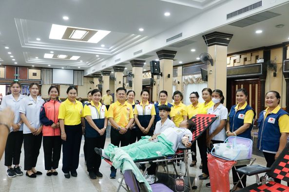 วันพุธ ที่ 12 มิถุนายน 2567 นายนฤชา โฆษาศิวิไลซ์ ผู้ว่าราชการจังหวัดบุรีรัมย์ ประธานที่ปรึกษาคณะกรรมการเหล่ากาชาดจังหวัดบุรีรัมย์ พร้อมด้วย นางวาทิณี โฆษาศิวิไลซ์ นายกเหล่ากาชาดจังหวัดบุรีรัมย์และคณะกรรมการและสมาชิกเหล่ากาชาดจังหวัดบุรีรัมย์ สมาชิกสมาคมแม่บ้านมหาดไทยจังหวัดบุรีรัมย์ ร่วมกับคลังเลือดโรงพยาบาลบุรีรัมย์ ออกหน่วยรับบริจาคโลหิต ดวงตาและอวัยวะ โครงการ “Plus 1 เพิ่มจำนวนครั้ง เพิ่มโลหิต เพิ่มชีวิต (Plus One Blood Donation More Blood More Lives)” ห้วงเดือนมกราคม-ธันวาคม 2567 ณ หอประชุมวิชชาอัตศาสตร์ มหาวิทยาลัยราชภัฏบุรีรัมย์