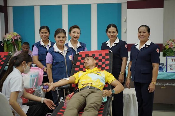 วันพฤหัสบดี ที่ 16 พฤษภาคม 2567 นางวาทิณี โฆษาศิวิไลซ์ นายกเหล่ากาชาดจังหวัดบุรีรัมย์ มอบหมายให้คณะกรรมการและสมาชิกเหล่ากาชาดจังหวัดบุรีรัมย์ พลตำรวจตรี รุทธพล เนาวรัตน์ ผู้บังคับการตำรวจภูธรจังหวัดบุรีรัมย์ คณะแม่บ้านตำรวจจังหวัดบุรีรัมย์ และคณะคลังเลือดโรงพยาบาลบุรีรัมย์ ร่วมออกหน่วยรับบริจาคโลหิต ดวงตา และอวัยวะ ตามโครงการ “Plus 1 เพิ่มจำนวนครั้ง เพิ่มโลหิต เพิ่มชีวิต (Plus One Blood Donation More Blood More Lives)” ห้วงเดือนมกราคม-ธันวาคม 2567 ณ หอประชุมชัยจินดา สถานีตำรวจภูธรเมืองบุรีรัมย์ ตำบลในเมือง อำเภอเมืองบุรีรัมย์ จังหวัดบุรีรัมย์