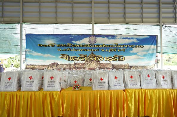 วันอังคารที่ 7 พฤษภาคม 2567 นางวาทิณี โฆษาศิวิไลซ์ นายกเหล่ากาชาดจังหวัดบุรีรัมย์ พร้อมด้วย นางชไมพร แหวนเพ็ชร รองนายกเหล่ากาชาดจังหวัดบุรีรัมย์ นางปิยาภรณ์ มีภักดี นายกกิ่งกาชาดอำเภอลำปลายมาศ คณะกรรมการเหล่ากาชาดจังหวัดบุรีรัมย์ และสมาชิกเหล่ากาชาดจังหวัดบุรีรัมย์ ลงพื้นที่ตรวจเยี่ยมให้กำลังใจและมอบชุดธารน้ำใจสภากาชาดไทยแก่ประชาชนที่ประสบวาตภัยในพื้นที่อำเภอลำปลายมาศ เพื่อบรรเทาความเดือดร้อนในเบื้องต้น เป็นการสร้างขวัญและกำลังใจให้แก่ประชาชน โดยได้สั่งการให้หน่วยงานที่เกี่ยวข้องเร่งแก้ไขปัญหา บรรเทาความเดือดร้อนแก่ประชาชนที่ได้รับผลกระทบ และสำรวจความเสียหายเพื่อนำไปพิจารณาการช่วยเหลือต่อไป ณ องค์การบริหารส่วนตำบลโคกกลาง อำเภอลำปลายมาศ จังหวัดบุรีรัมย์