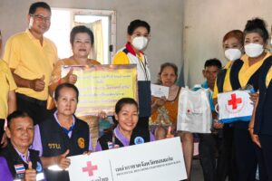 วันที่ 21 สิงหาคม 2567 ณ หมู่ที่ 9 ตำบลโนนสมบูรณ์ อำเภอบ้านแฮด นางกรรณิกา กองฉลาด นายกเหล่ากาชาดจังหวัดขอนแก่น พร้อมด้วยคณะกรรมการเหล่ากาชาดจังหวัดขอนแก่น และ อำเภอบ้านแฮด ออกเยี่ยมและมอบเงิน จำนวน 3,000 บาท (สามพันบาทถ้วน) พร้อมด้วยถุงยังชีพช่วยเหลือ นางแถม ชาดา ผู้ป่วยติดเตียง ผู้ยากไร้ที่มีฐานะยากจน ตามโครงการกาชาดเยี่ยมบ้าน เยี่ยมใจ ห่วงใยผู้ป่วยติดเตียง ประจำปีงบประมาณ 2567