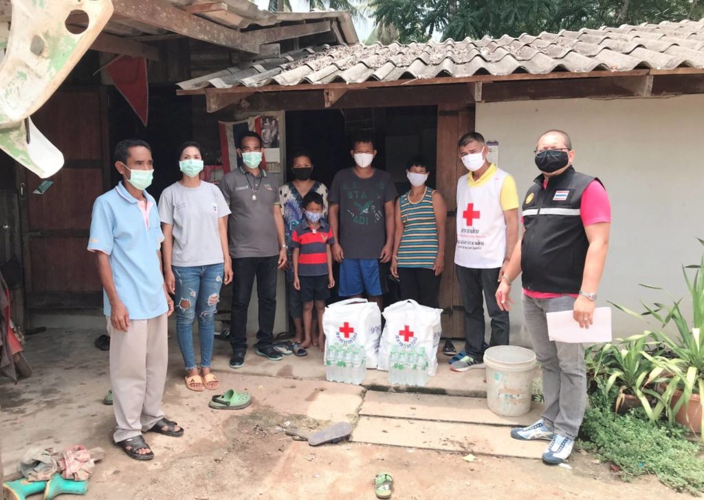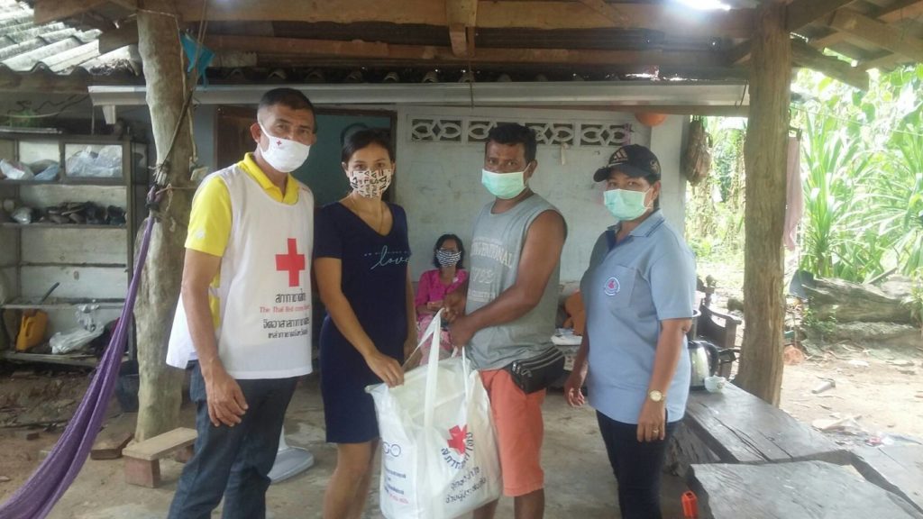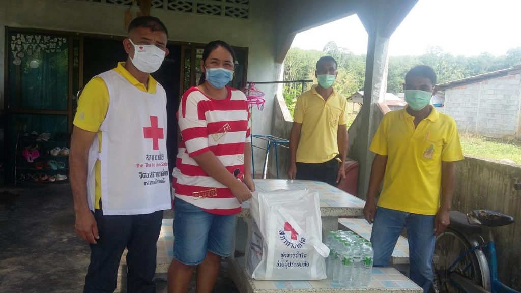 วันที่ 8 พฤษภาคม 2563 นางเอื้อจิตร เจริญทรัพย์ นายกเหล่ากาชาดจังหวัดตรัง มอบหมายให้จิตอาสาสภากาชาดไทย ตำบลบางด้วน อำเภอปะเหลียน ลงพื้นที่มอบชุดธารน้ำใจสภากาชาดไทยให้กับผู้ที่ได้รับผลกระทบโรคโควิด-19 จากการเลิกจ้างงานในตำบลบางด้วนจำนวน42ราย