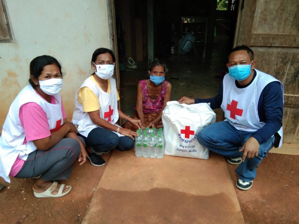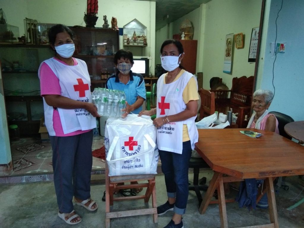 ธารน้ำใจสภากาชาดไทยใหักับผู้กักตัวที่บ้าน เพื่อช่วยบรรเทาความเดือดร้อนในสถานการณ์โควิด-19