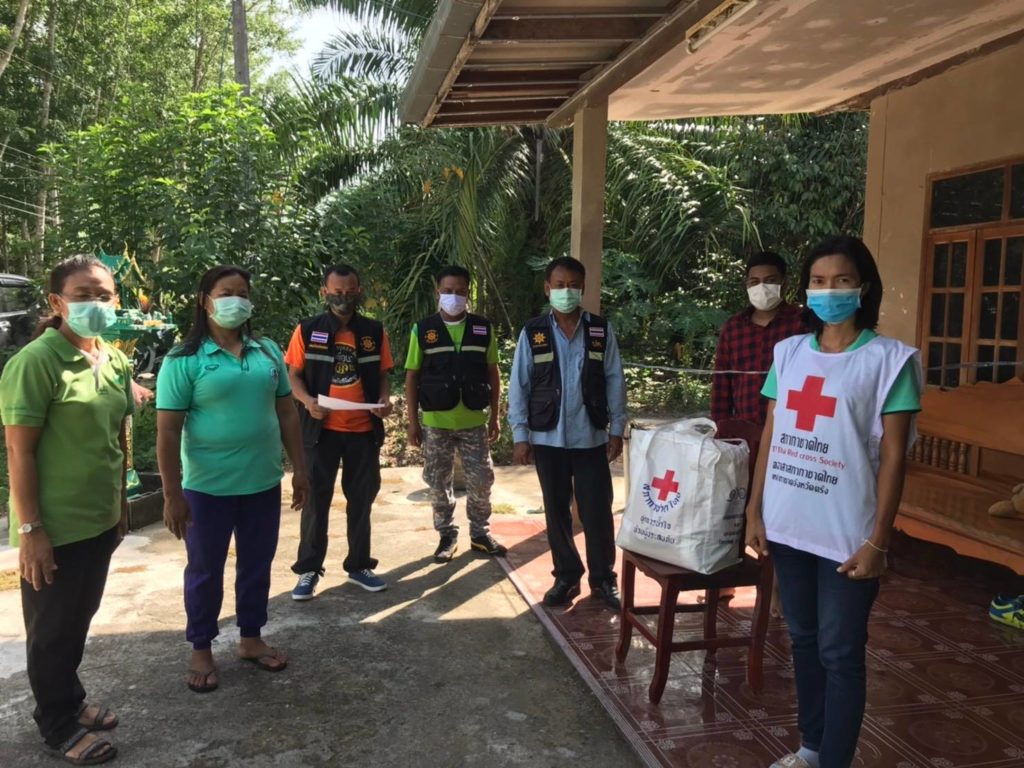 วันที่ 9 พฤษภาคม 2563 นางเอื้อจิตร เจริญทรัพย์ นายกเหล่ากาชาดจังหวัดตรัง ได้มอบหมายจิตอาสาสภากาชาดไทย ในอำเภอรัษฎาและอำเภอห้วยยอด ลงพื้นที่มอบชุด
