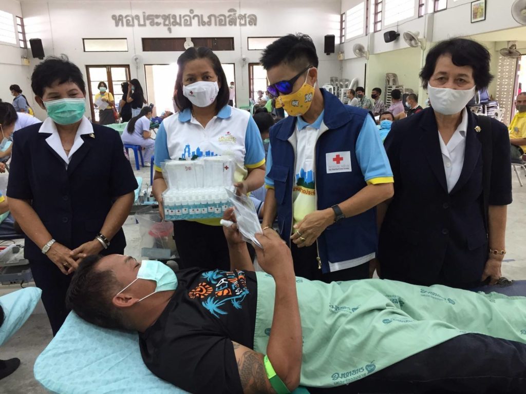 วันที่ 8 พฤษภาคม 2563 นางรัติยา พัฒกุลนายกเหล่ากาชาดจังหวัดนครศรีธรรมราช มอบหมายให้คณะกรรมการเหล่ากาชาดจังหวัดนครศรีธรรมราชออกหน่วยรับบริจาคโลหิต ณ ศาลาประชาคมอำเภอสิชล จังหวัดนครศรีธรรมราช ได้โลหิตจำนวน 112 ยูนิต พร้อมมอบแอลกอฮอล์และหน้ากากอนามัยผ้าให้กับผู้บริจาคโลหิตจำนวน 112 ชิ้น