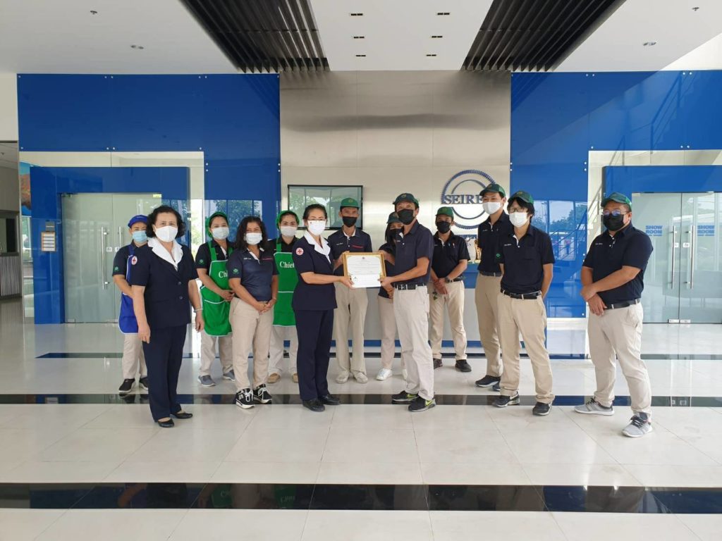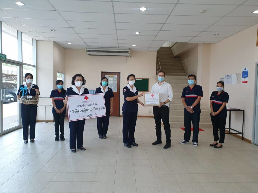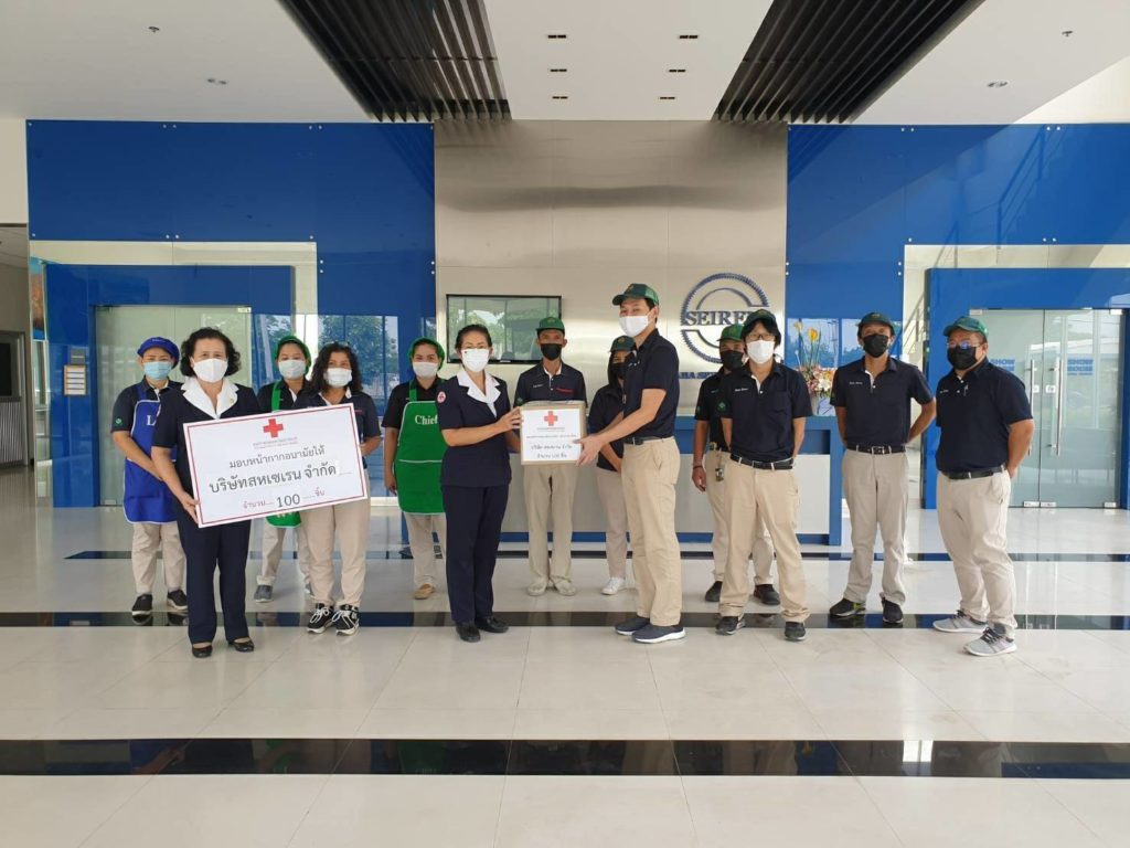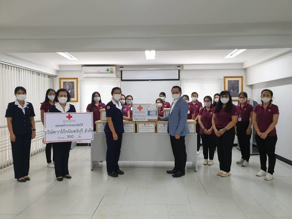 ในการนี้เหล่ากาชาดจังหวัดปราจีนบุรีได้มอบหน้ากากอนามัยแบบผ้าเพื่อมอบให้พนักงานของทั้ง 3 บริษัทด้วย