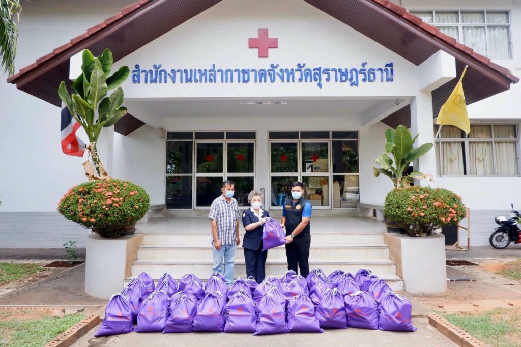 วันที่ 13 พฤษภาคม 2563 นางอุรสา จินโต นายกเหล่ากาชาดจังหวัดสุราษฎร์ธานี มอบหมายให้นางลดาวัลย์ เหมะกุล กรรมการเหล่ากาชาดจังหวัดสุราษฎร์ธานี เป็นตัวแทน