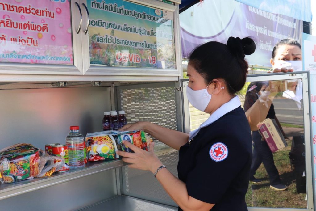 วันที่ 14 พฤษภาคม 2563 นางเอื้อจิตร เจริญทรัพย์ นายกเหล่ากาชาดจังหวัดตรัง รับมอบต้นกล้าพันธุ์ผักสวนครัวจากเกษตรจังหวัดตรังและศูนย์ส่งเสริมและพัฒนาอาชีพการเกษตรจังหวัดตรัง (พันธุ์พืชเพาะเลี้ยง) สำหรับมอบให้ชาวบ้านที่ประสบภัยโควิด-19 เพื่อนำไปปลูกและประกอบอาหาร จากนั้นได้เติมตู้วิเศษ ปันน้ำใจให้ชาวตรัง