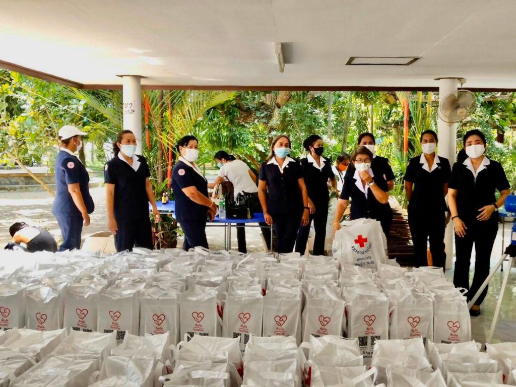 สถานีกาชาดสำนักงานบรรเทาทุกข์และประชานามัยพิทักษ์ สภากาชาดไทยร่วมมอบชุดธารน้ำใจ ช่วยเหลือกลุ่มแรงงานข้ามชาติที่ได้รับผลกระทบจากสถานการณ์โควิด-19