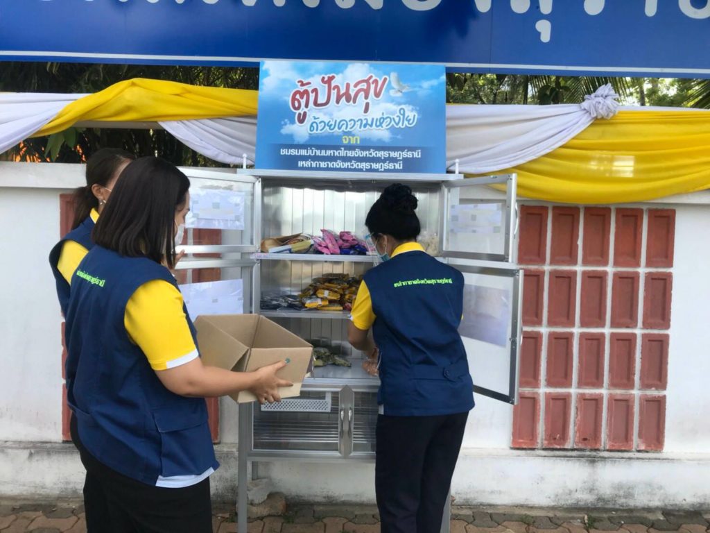 โดย “ตู้ปันสุข” ดังกล่าว ทางชมรมแม่บ้านมหาดไทยจังหวัดสุราษฎร์ธานีได้ร่วมกับเหล่ากาชาดจังหวัดสุราษฎร์ธานี ร่วมกันจัดทำขึ้น ทั้งนี้เพื่อช่วยเหลือผู้ที่ได้รับผลกระทบ