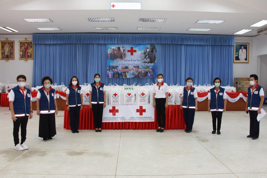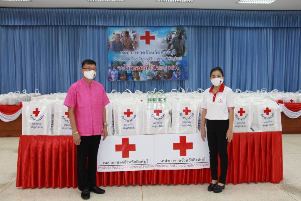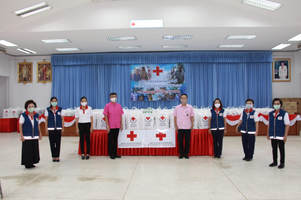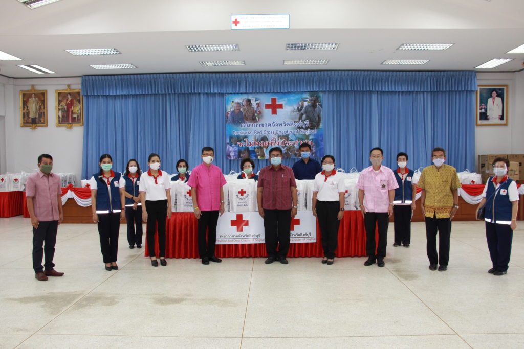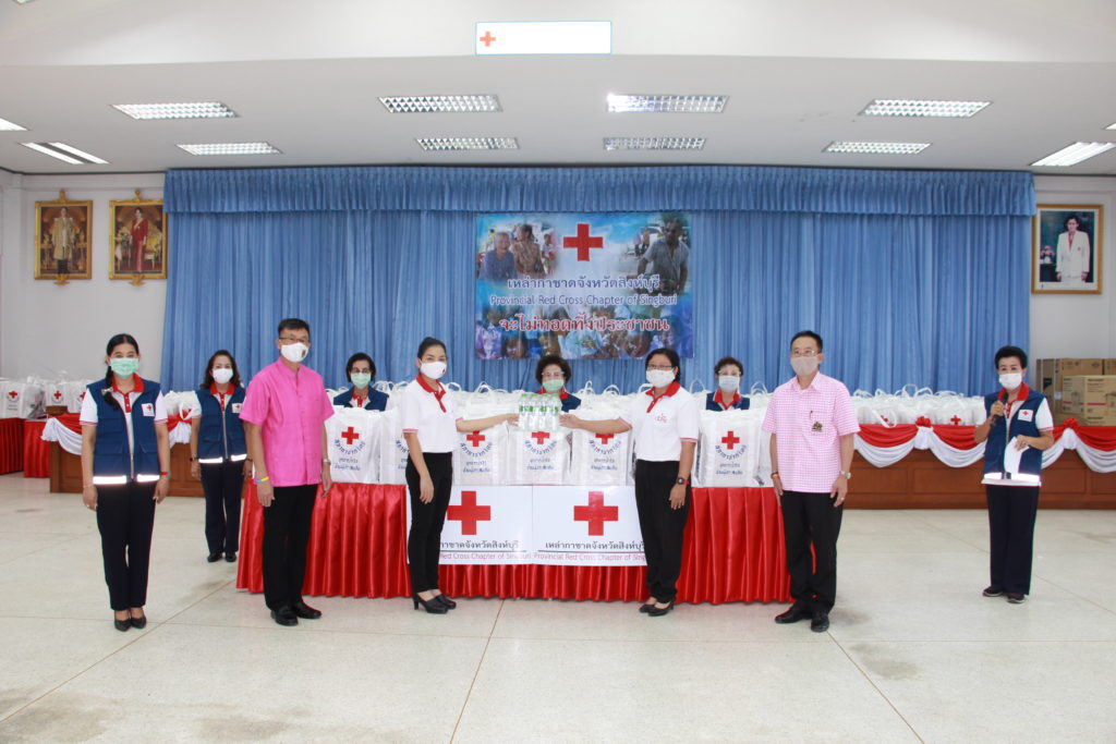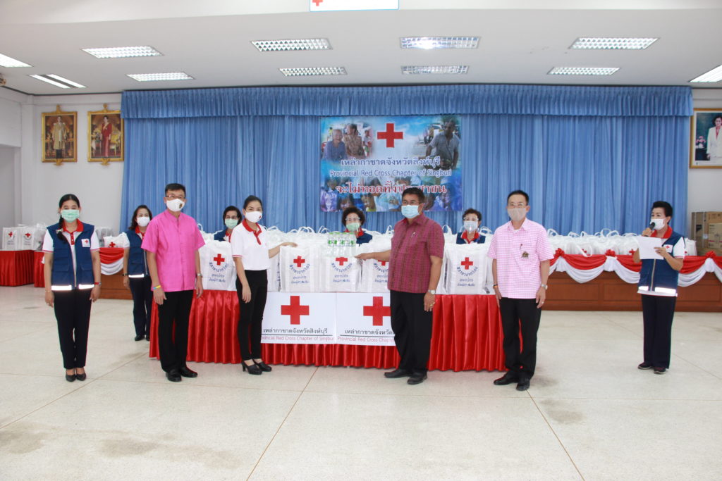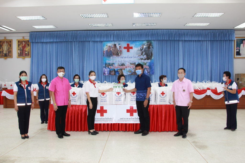 จังหวัดสิงห์บุรี มอบชุดธารน้ำใจสภากาชาดไทยให้นายอำเภอเมืองสิงห์บุรี จำนวน 377 ชุด นายอำเภออินทร์บุรี จำนวน 19 ชุดและ ผู้แทนอำเภอค่ายบางระจัน จำนวน 1 ชุด