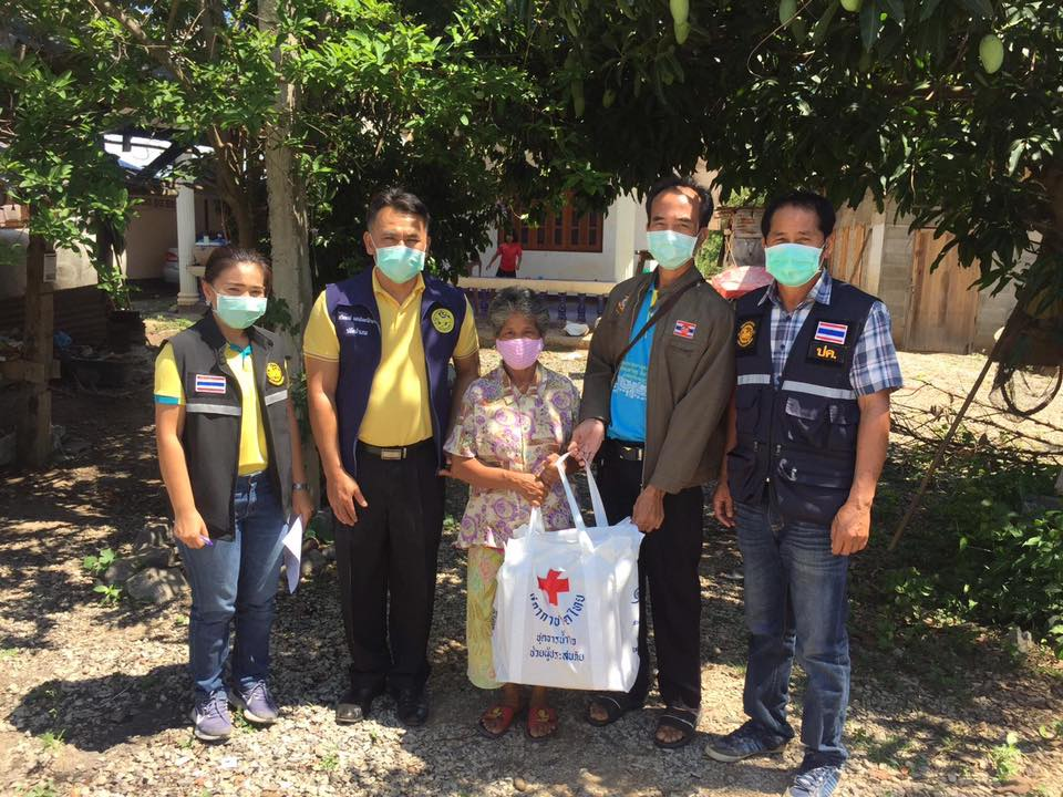 และประชานามัยพิทักษ์ สภากาชาดไทย โดยนำไปมอบให้ความช่วยเหลือ ผู้เฝ้าระวังกักตนเองในที่พักพิงเป็นเวลา 14 วัน กลุ่มประชาชนที่อยู่อาศัยในหมู่บ้านที่มีการประกาศ
