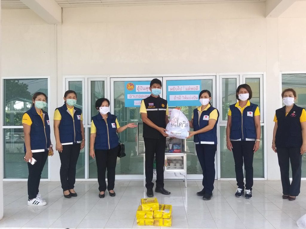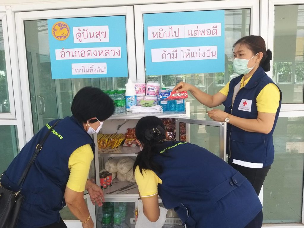 เหล่ากาชาดจังหวัด มุกดาหารนำอาหาร/เครื่องอุปโภคบริโภคจากชุดยังชีพ ที่ได้รับมอบจากบริษัท บี.กริบ เพาเวอร์ จำกัด (มหาชน) มาเติม “ตู้ปันสุข มุกดาหาร” จำนวน 3 ชุดข้าวสารเหนียว,ขนม ณ ที่ว่าการอำเภอดงหลวง จังหวัดมุกดาหาร