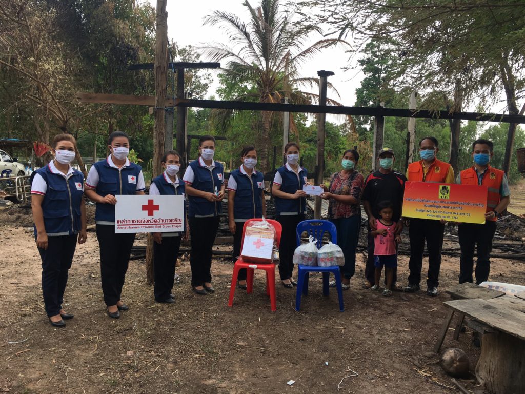 วันที่ 22 พฤษภาคม 2563 นางสุนิชฌาน์ ทองแย้ม นายกเหล่ากาชาดจังหวัดอำนาจเจริญ พร้อมด้วย รองนายกเหล่ากาชาดจังหวัดอำนาจเจริญ ผู้ช่วยนายกเหล่ากาชาดจังหวัดอำนาจเจริญ คณะกรรมการและสมาชิกเหล่ากาชาดจังหวัดอำนาจเจริญ ออกเยี่ยมผู้ประอัคคีภัย จำนวน 1 ราย นางธัมพร กาสี อยู่บ้านเลขที่ 55 หมู่ที่ 3 ตำบลหนองสามสี อำเภอเสนางคนิคม จังหวัดอำนาจเจริญ ในการนี้เหล่ากาชาดจังหวัดอำนาจเจริญ มอบเงินช่วยเหลือจำนวน 5,000 บาท เครื่องอุปโภค-บริโภค จำนวน 1 ชุด ให้กับผู้ประสบภัยเพื่อเป็นการสร้างขวัญให้กำลังใจในเบื้องต้น พร้อมทั้งมอบแอลกอฮอล์ ที่ได้รับสนับสนุนจาก บริษัท ไทยเบฟเวอเรจ จำกัด