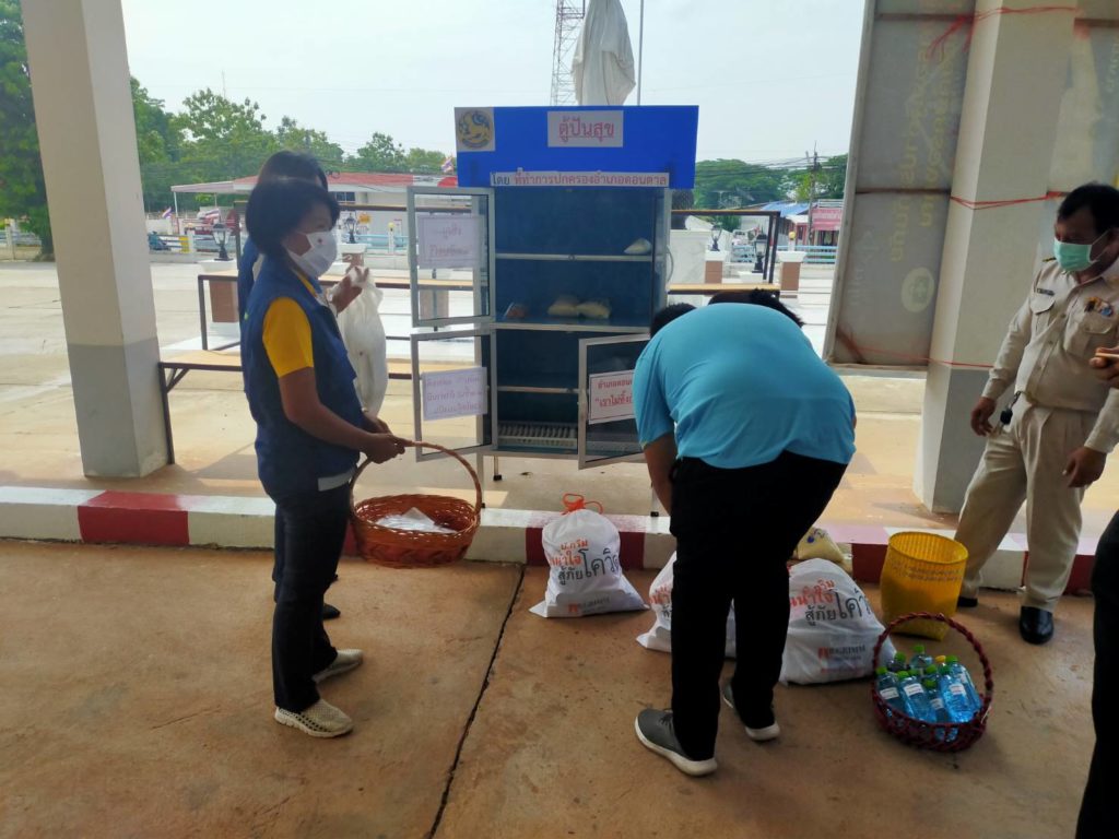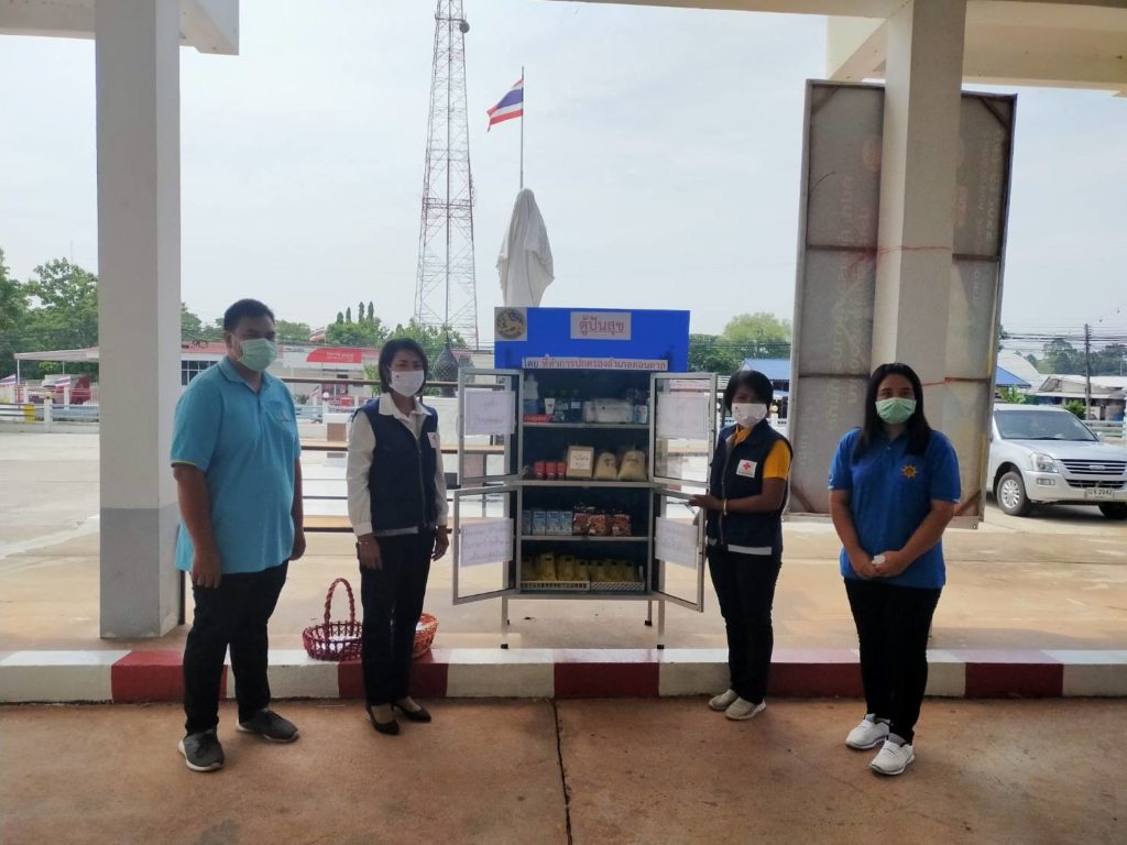 วันที่ 22 พฤษภาคม 2563 ทันตแพทย์หญิงศิริรัตน์ ศิริมาศ นายกเหล่ากาชาดจังหวัดมุกดาหาร มอบหมายให้นางสมจิตร์ สร้อยสำโรง รองนายกเหล่ากาชาดจังหวัดมุกดาหารพร้อมด้วยกรรมการเหล่ากาชาดจังหวัดมุกดาหาร นำอาหาร/เครื่องอุปโภคบริโภคจากชุดยังชีพ ที่ได้รับมอบบริษัท บี.กริบ เพาเวอร์ จำกัด (มหาชน) มาเติม “ตู้ปันสุข มุกดาหาร” จำนวน 2 ชุด ณ ที่ว่าการอำเภอดอนตาล จังหวัดมุกดาหาร