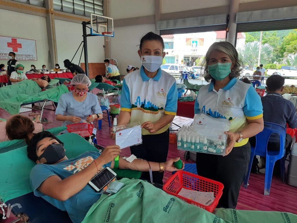 วันที่ 22 พฤษภาคม 2563 นางรัติยา พัฒกุลนายกเหล่ากาชาดจังหวัดนครศรีธรรมราชมอบหมายให้คณะกรรมการเหล่ากาชาดจังหวัดนครศรีธรรมราช ออกหน่วยรับบริจาคโลหิต ณ หอประชุมกีฬาต่อต้านยาเสพติดเทศบาลตำบลลานสกา อำเภอลานสกา จังหวัดนครศรีธรรมราช ได้โลหิตจำนวน 129 ยูนิต พร้อมมอบแอลกอฮอล์และหน้ากากอนามัยผ้า