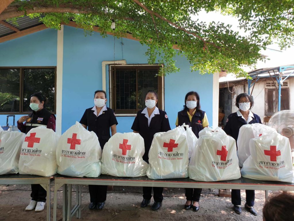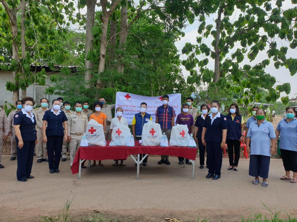 อำเภอกบินทร์บุรี โดยเหล่ากาชาดจังหวัดปราจีนบุรี มอบชุดธารน้ำใจ สภากาชาดไทย ซึ่งได้รับการสนับสนุนจากสำนักงานบรรเทาทุกข์และประชานามัยพิทักษ์ สภากาชาดไทย ให้รายละ 1 ชุด และมอบชุดกาชาดห่่วงใย ป้องกันโควิด – 19 (ผลิตภัณฑ์แอลกอฮอลล์ทำความสะอาด) ให้รายละ 1 ชุด เพื่อบรรเทาทุกข์ในเบื้องต้น