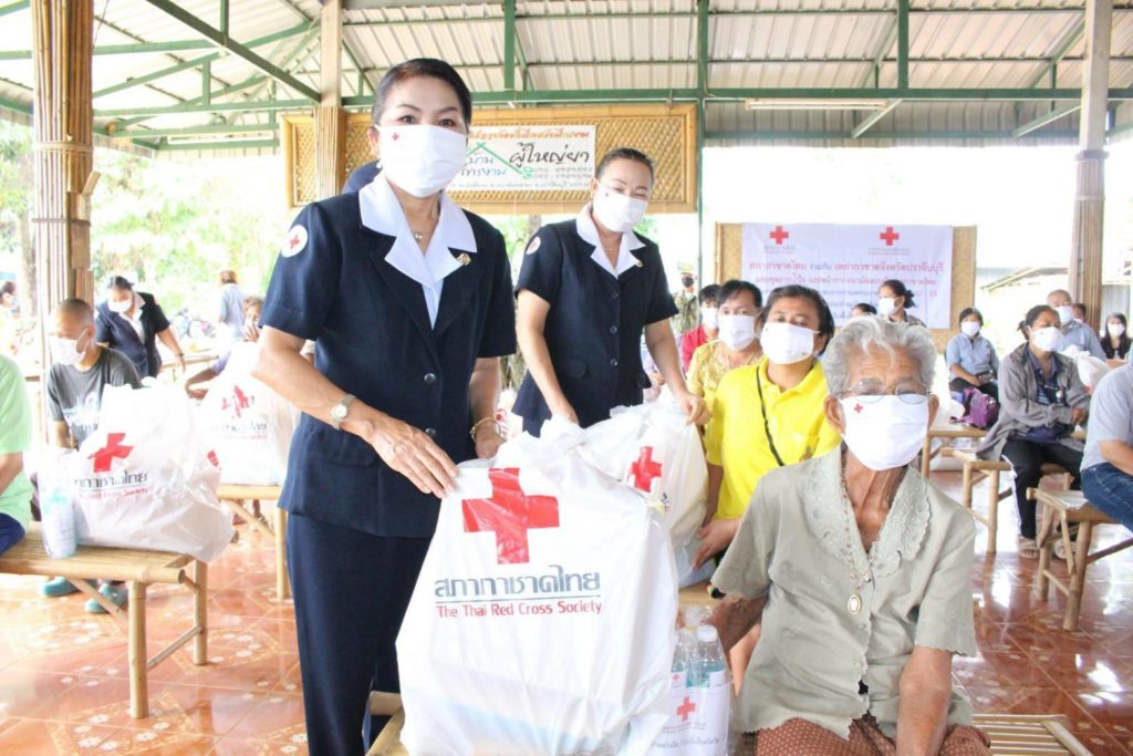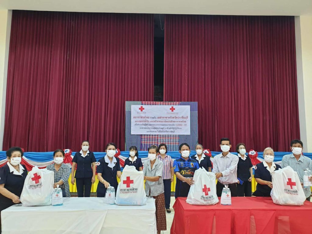 จากสำนักงานบรรเทาทุกข์และประชานามัยพิทักษ์ สภากาชาดไทย ให้รายละ 1 ชุด และมอบชุดกาชาดห่วงใย ป้องกันโควิด – 19 (ผลิตภัณฑ์แอลกอฮอลล์ทำความสะอาด หน้ากากอนามัยแบบผ้าตราสัญลักษณ์สภากาชาดไทย และหน้ากากอนามัยแบบผ้าของเหล่ากาชาดจังหวัดปราจีนบุรี) ให้รายละ 1 ชุด เพื่อบรรเทาทุกข์ในเบื้องต้น
