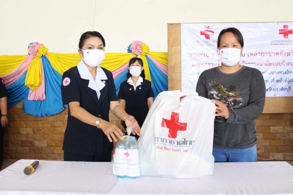 จากการแพร่ระบาดของโรคติดเชื้อไวรัสโควิค-19 ในพื้นที่อำเภอประจันตคาม โดยเหล่ากาชาดจังหวัดปราจีนบุรี มอบชุดธารน้ำใจ สภากาชาดไทย ซึ่งได้รับการสนับสนุน