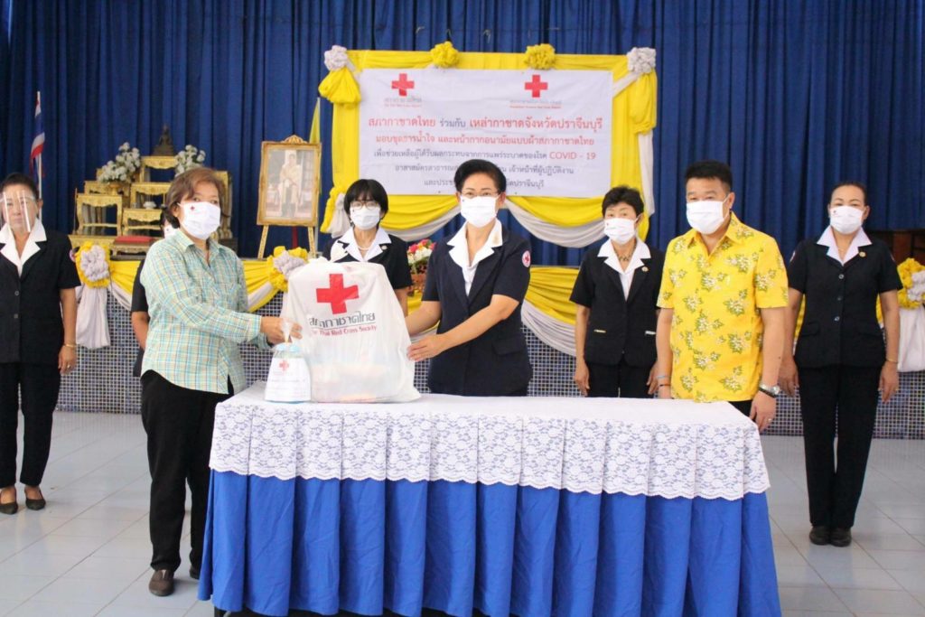 ในพื้นที่อำเภอเมืองปราจีนบุรีโดยเหล่ากาชาดจังหวัดปราจีนบุรี มอบชุดธารน้ำใจ สภากาชาดไทย ซึ่งได้รับการสนับสนุนจากสำนักงานบรรเทาทุกข์และประชานามัยพิทักษ์ สภากาชาดไทย ให้รายละ 1 ชุด และมอบชุดกาชาดห่วงใย ป้องกันโควิด – 19 (ผลิตภัณฑ์แอลกอฮอลล์ทำความสะอาด หน้ากากอนามัยแบบผ้าตราสัญลักษณ์สภากาชาดไทย และหน้ากากอนามัยแบบผ้าของเหล่ากาชาดจังหวัดปราจีนบุรี) ให้รายละ 1 ชุด เพื่อบรรเทาทุกข์ในเบื้องต้น