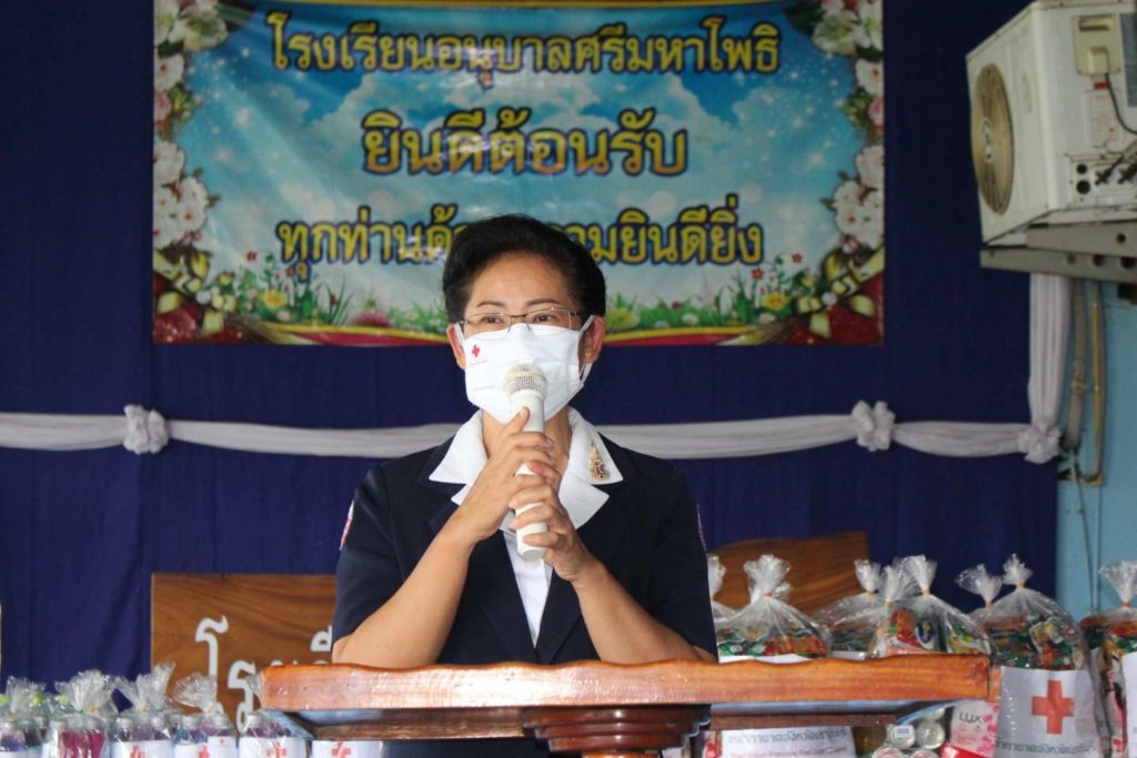 วันที่ 21 พฤษภาคม 2563 โรงเรียนอนุบาลศรีมหาโพธินางอังคณา หัตถกิจโกศล นายกเหล่ากาชาดจังหวัดปราจีนบุรี พร้อมด้วยกรรมการและสมาชิกเหล่ากาชาดจังหวัดปราจีนบุรี เยี่ยมให้กำลังใจ พร้อมมอบสิ่งของเครื่องใช้ให้แก่เด็กนักเรียนที่ยากไร้ ขาดแคลน ด้อยโอกาส จำนวน 20 ราย พร้อมมอบชุดกาชาดห่วงใย ป้องกันโควิด-19 (ผลิตภัณฑ์แอลกอฮอลล์ทำความสะอาด หน้ากากอนามัยแบบผ้าตราสัญลักษณ์สภากาชาดไทย และหน้ากากอนามัยแบบผ้าของเหล่ากาชาดจังหวัดปราจีนบุรี) ให้ด้วยเพื่อเป็นการช่วยเหลือตามพันธกิจด้านการสังคมสงเคราะห์ต่อไป