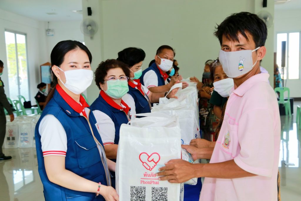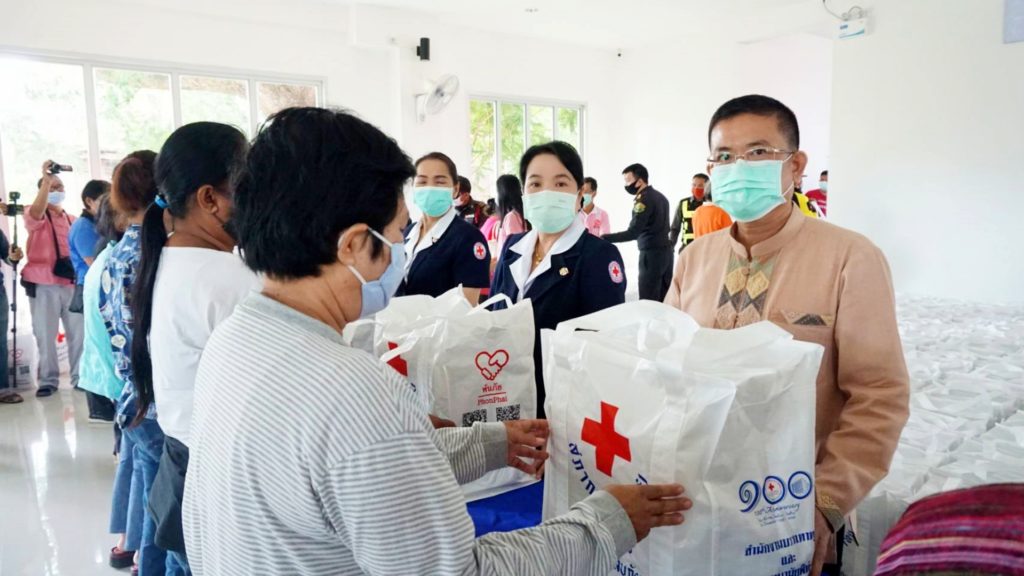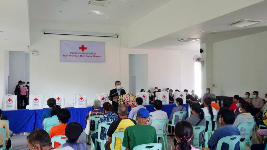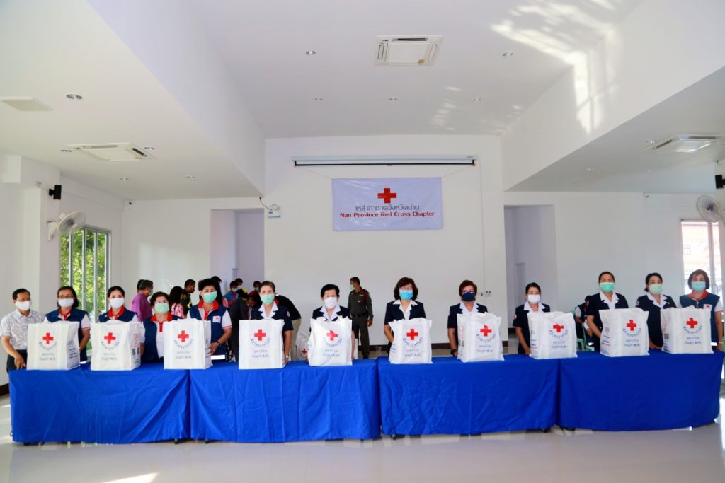 ของสำนักบรรเทาทุกข์และประชานามัยพิทักษ์ สภากาชาดไทย ร่วมกับเหล่ากาชาดจังหวัดน่าน โดย นางสุภาสินี งามธุระ รองนายกเหล่ากาชาดจังหวัดน่าน นายนิวัฒน์ งามธุระ เลขานุการเหล่ากาชาดจังหวัดน่าน นายวิศิษฐ์ ทวีสิงห์ นายอำเภอเมืองน่าน นายสุรพล เธียรสูตร นายกเทศมนตรีเมืองน่าน เพื่อช่วยเหลือผู้ได้รับผลกระทบจากการแพร่ระบาด