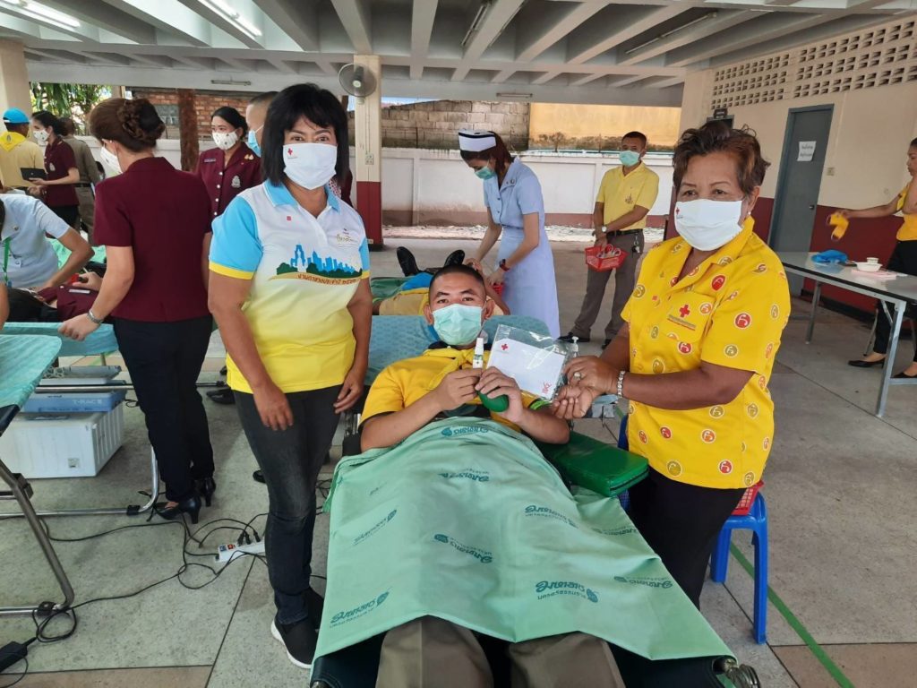 ณ อาคารหอประชุมขุนพันธ์รักษ์ราชเดช อำเภอเมืองนครศรีธรรมราช ได้โลหิตจำนวน 124 ยูนิต พร้อมมอบแอลกอฮอล์และหน้ากากอนามัยผ้าให้กับผู้บริจาคโลหิต จำนวน
