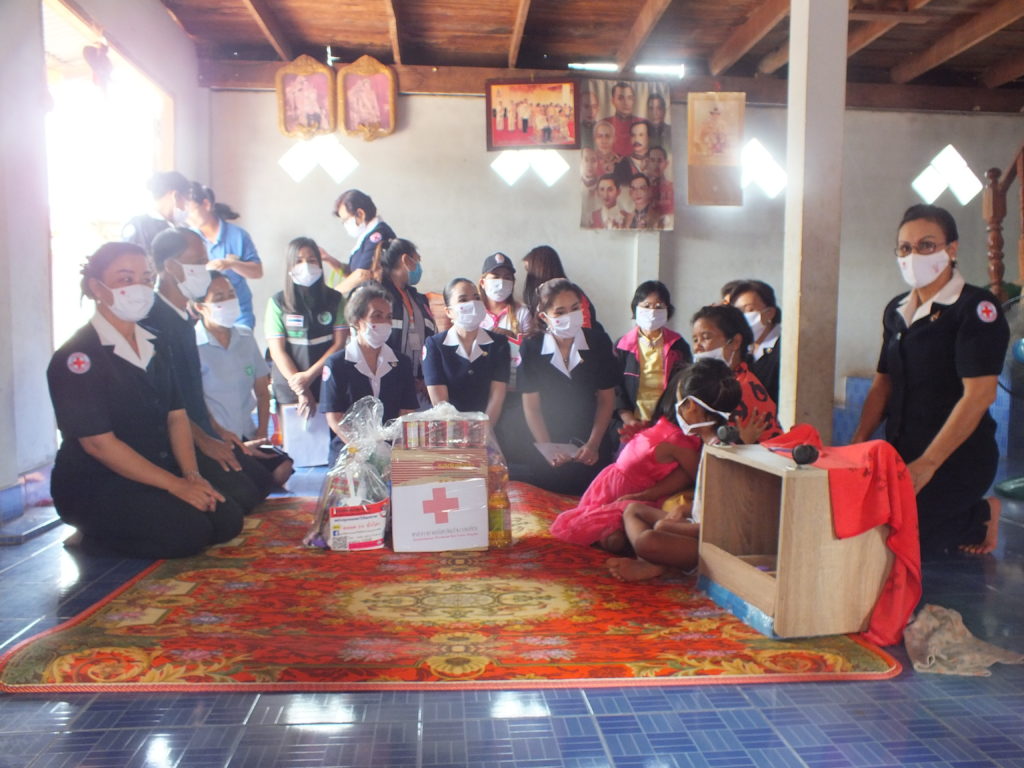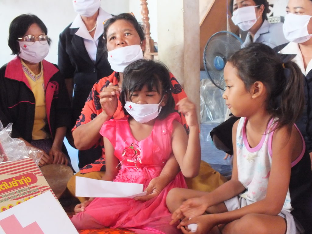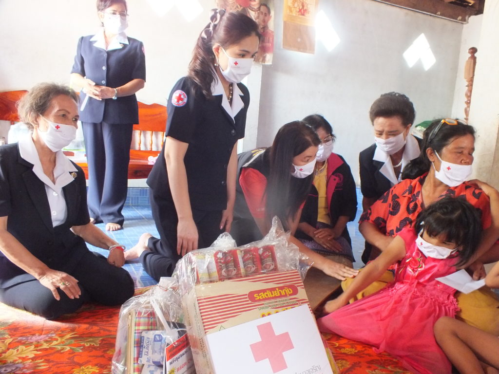 ที่ได้รับสนับสนุนจาก บริษัท ไทยเบฟเวอเรจ จำกัด และหน้ากากอนามัยที่มีตราสัญลักษณ์สภากาชาดไทย ให้กับผู้ป่วยเพื่อเป็นขวัญและกำลังใจสามารถดำเนินชีวิตร่วมกับสังคมได้อย่างปกติสุขต่อไป