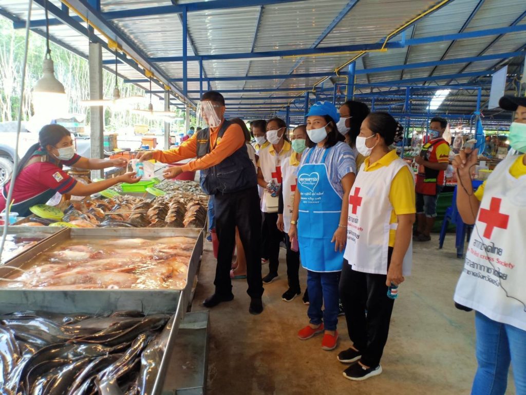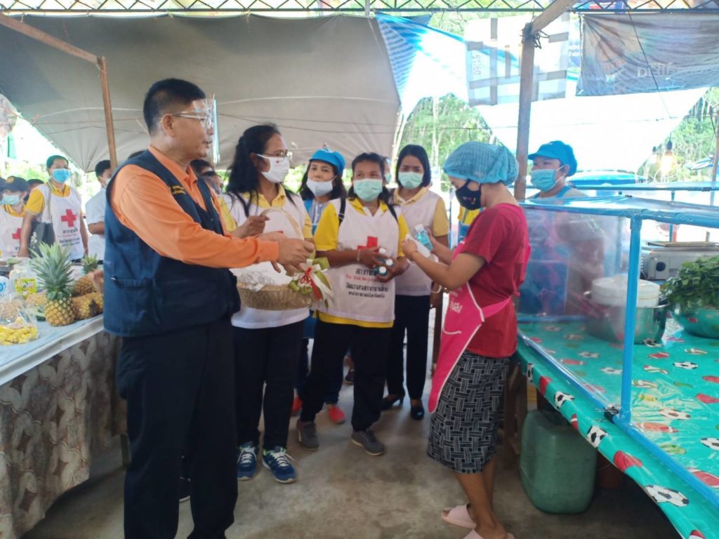 วันที่ 4 มิถุนายน 2563 นางเอื้อจิตร เจริญทรัพย์ นายกเหล่ากาชาดจังหวัดตรัง มอบหมายให้นายอนันต์ พรหมเพียรพงศ์ นายอำเภอรัษฎา พร้อมกับ นายทวี จบสองชั้น หัวหน้าสาธารณสุขอำเภอ และจิตอาสาสภากาชาดไทยอำเภอรัษฎา เป็นตัวแทนมอบแอลกอฮอล์และหน้ากากอนามัยสภากาชาดไทยให้แก่แม่ค้าในตลาดนัดลุงชมในพื้นที่อำเภอรัษฎา