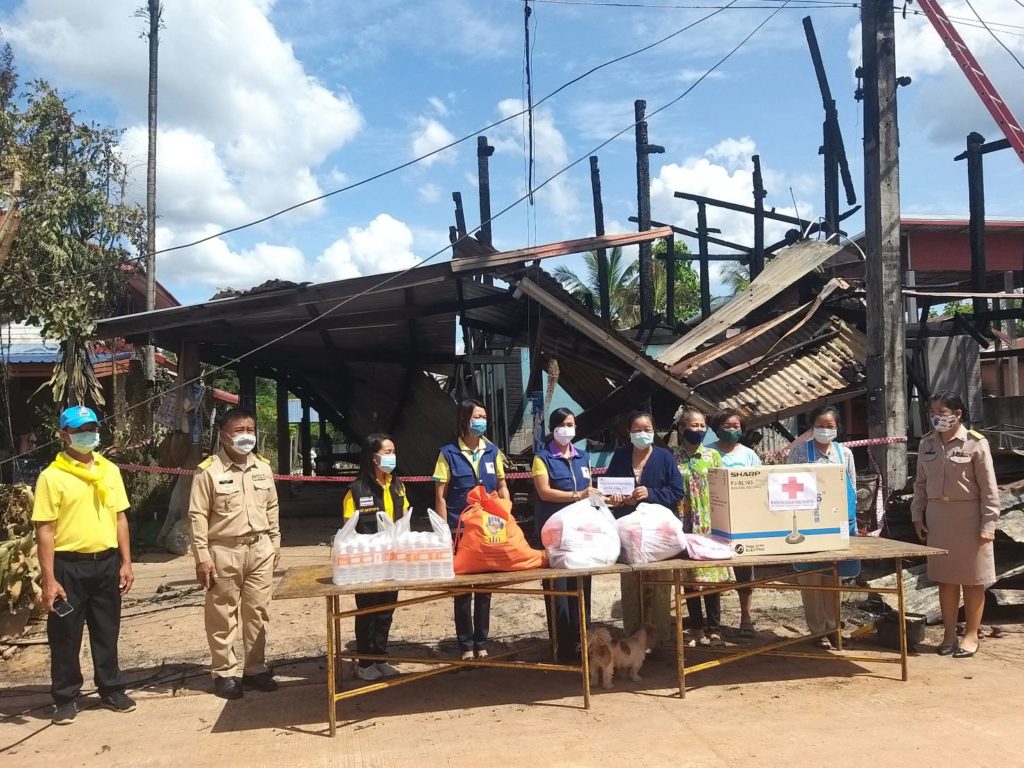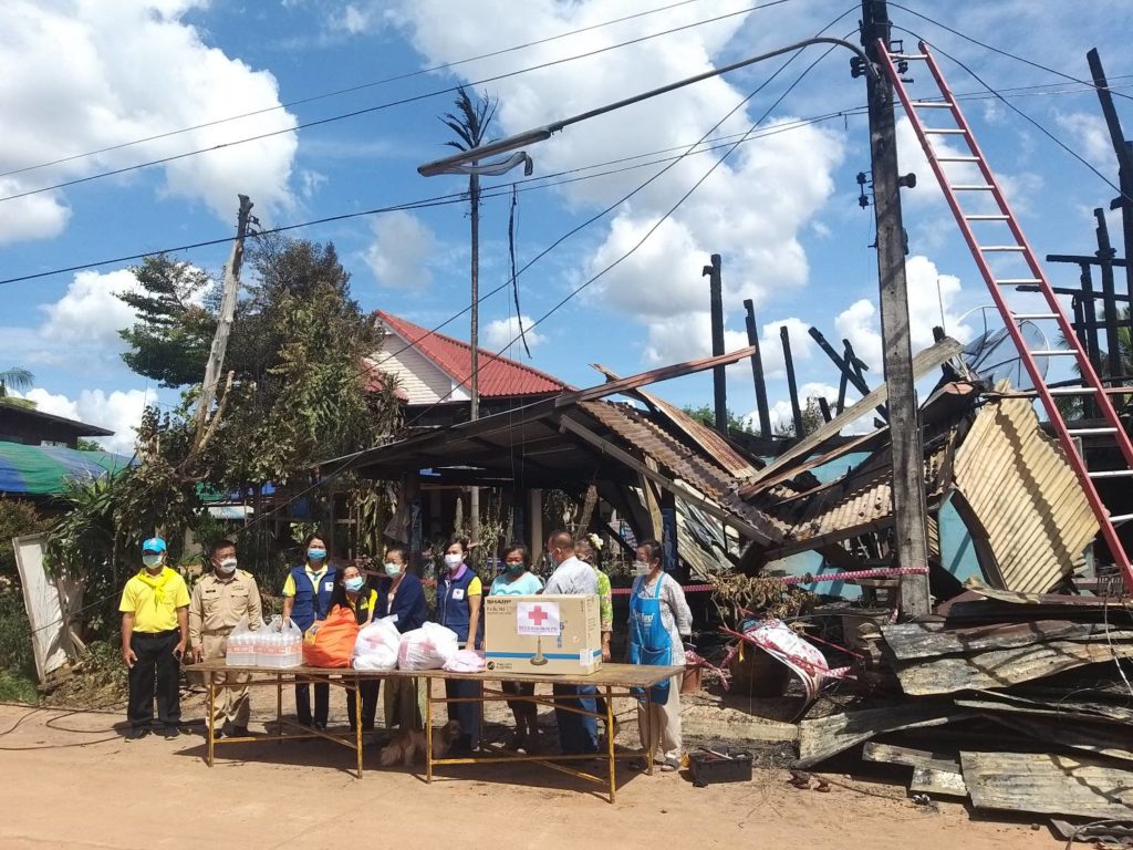 ช่วยเหลือและเครื่องใช้อุปโภคบริโภคที่จำเป็นเพื่อเป็นการเยียวยาเบื้องต้น โดยเหล่ากาชาดจังหวัดมุกดาหารช่วยเหลือเบื้องต้น ดังนี้