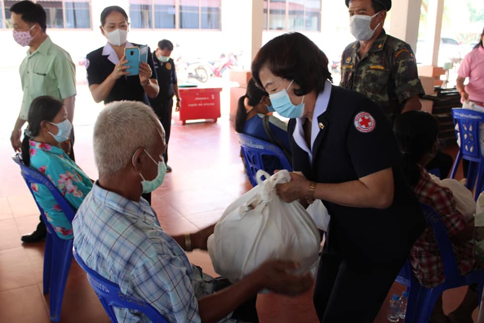 วันที่ 27 พฤษภาคม 2563 นางฐิฐา เชียงวงค์ นายกเหล่ากาชาดจังหวัดพะเยา พร้อมด้วยที่ปรึกษา คณะกรรมการ สมาชิกเหล่ากาชาดจังหวัดพะเยา ได้มอบถุงยังชีพที่ได้รับ