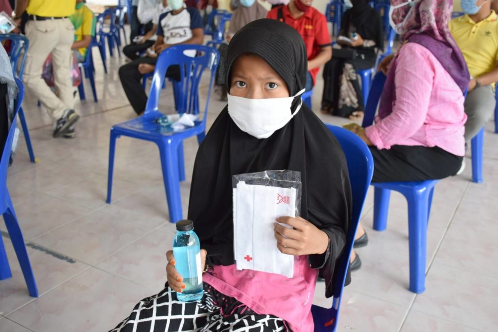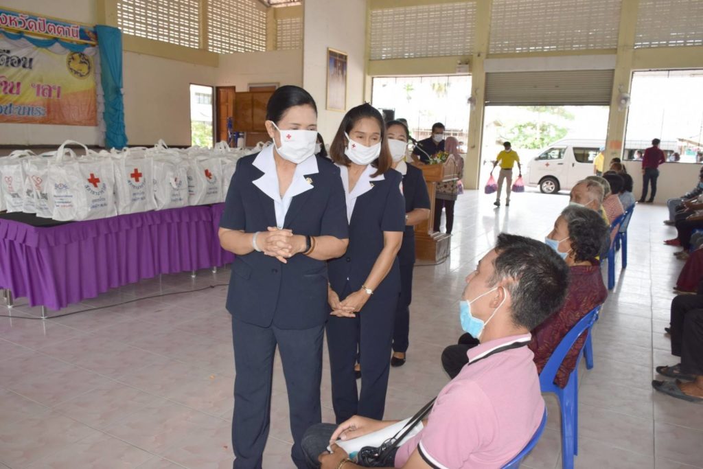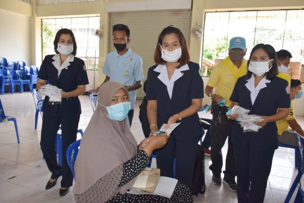 วันที่ 16 มิถุนายน 2563 นางอนุรี วิศิษฎ์วงศ์ นายกเหล่ากาชาดจังหวัดปัตตานี พร้อมด้วยรองนายกเหล่ากาชาดจังหวัดปัตตานี, ที่ปรึกษา, คณะกรรมการและสมาชิกเหล่ากาชาดจังหวัดปัตตานี ร่วมแจกจ่ายหน้ากากอนามัยแบบผ้า ตามโครงการจัดหาผ้าฝ้ายมัสลินที่มีตราสัญลักษณ์สภากาชาดไทย “โครงการสภากาชาดไทย ร่วมใจป้องกันภัย COVID-19 ด้วยหน้ากากอนามัยแบบผ้า” ป้องกันการแพร่ระบาดของเชื้อไวรัสโคโรนา Coronavirus (COVID-19) ตามรูปแบบที่สภากาชาดไทยกำหนด จำนวน 200 ชิ้น และผลิตภัณฑ์ทำความสะอาดจากแอลกอฮอล์ ชนิด เอทิลแอลกอฮอล์ 72% จำนวน 160 ขวด (40,000 มิลลิลิตร) แก่ผู้ด้อยโอกาส ผู้ยากไร้ รวมถึงประชาชนทั่วไปในพื้นที่อำเภอปะนาเระ