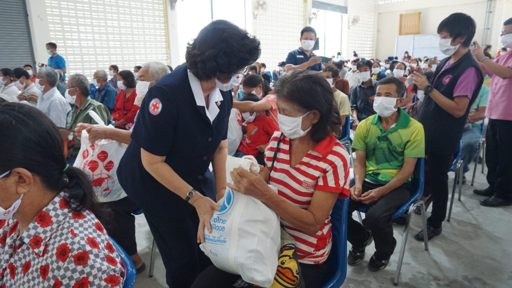 โดย นางเบ็ญจวรรณ ศรีทิพากร นายกเหล่ากาชาดจังหวัดน่าน และว่าที่ร้อยตรีศราวุธ กรจิระเจริญ นายอำเภอนาน้อย/ นายกกิ่งกาชาดอำเภอนาน้อย นายจรัญ ยะม่อนแก้ว นายอำเภอนาหมื่น พร้อมคณะเหล่ากาชาดจังหวัดน่าน กิ่งกาชาดอำเภอนาน้อย มอบสิ่งของเครื่องอุปโภค บริโภค ชุดธารน้ำใจ ของสำนักบรรเทาทุกข์และประชานามัยพิทักษ์ สภากาชาดไทย ให้กับผู้ที่ได้รับผลกระทบจากการแพร่ระบาดของโรคติดเชื้อไวรัสโควิด-19 ที่มีรายได้น้อย มีฐานะยากจน ในพื้นที่อำเภอนาน้อย จำนวน 200 ชุด