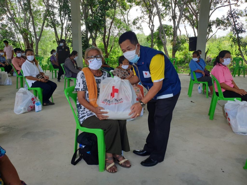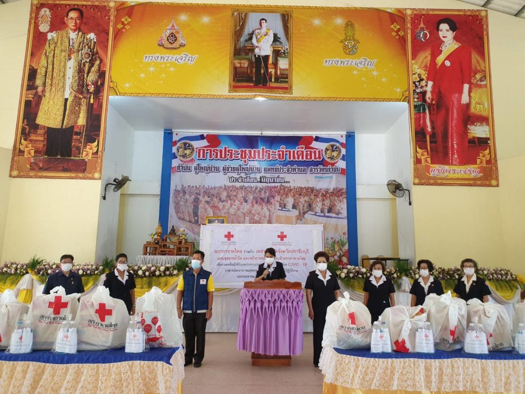 โดยเหล่ากาชาดจังหวัดปราจีนบุรี มอบชุดธารน้ำใจ สภากาชาดไทย ซึ่งได้รับการสนับสนุนจากสำนักงานบรรเทาทุกข์และประชานามัยพิทักษ์ สภากาชาดไทย ให้รายละ 1 ชุด มอบชุดกาชาดห่วงใย ป้องกันโควิด – 19 (ผลิตภัณฑ์แอลกอฮอลล์ทำความสะอาด หน้ากากอนามัยแบบผ้าตราสัญลักษณ์สภากาชาดไทย และหน้ากากอนามัยแบบผ้า