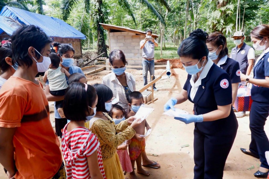 ได้แจกหน้ากากอนามัยแบบผ้าที่มีตราสัญลักษณ์ สภากาชาดไทย และแอลกอฮอล์ล้างมือ ให้แก่ประชาชนในพื้นที่เพื่อป้องกันการแพร่ระบาดของเชื้อไวรัสโคโรนา 2019 ด้วย