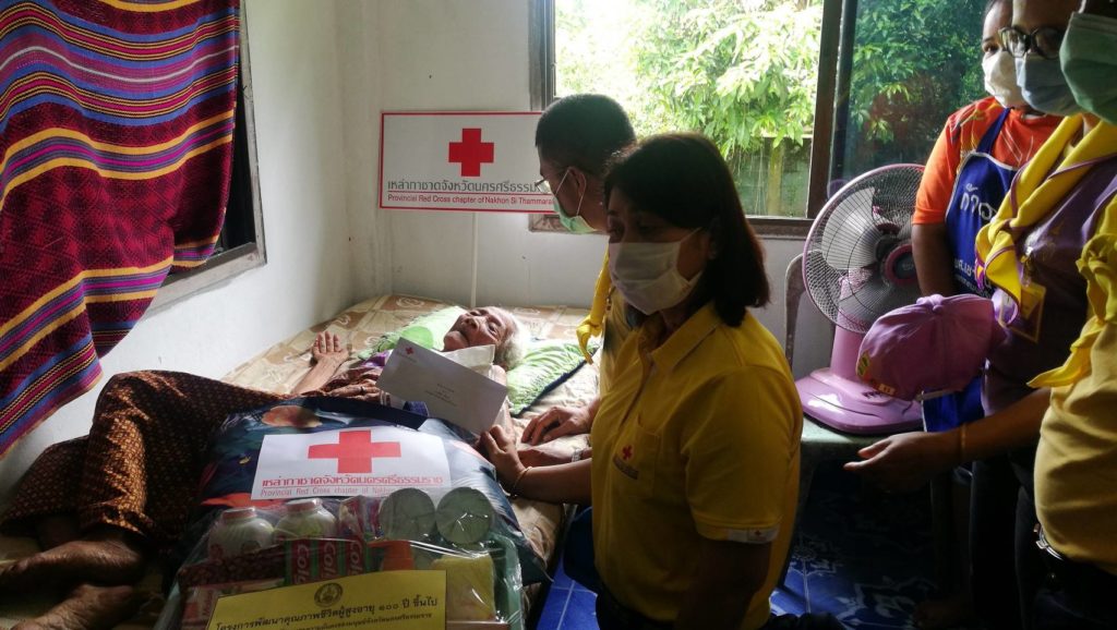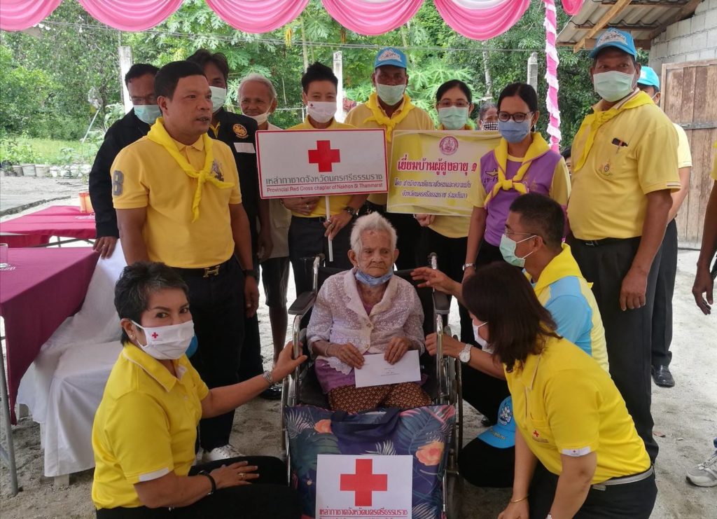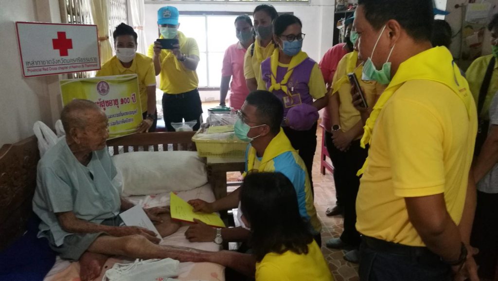 นำเครื่องอุปโภคบริโภคและเงินจำนวน 1,000 บาท มอบผู้สูงอายุ 100 ปีขึ้น ณ พื้นที่อำเภอพระพรหม จังหวัดนครศรีธรรมราช จำนวน 7 ราย ดังนี้