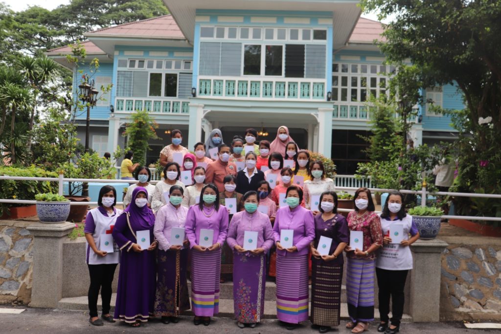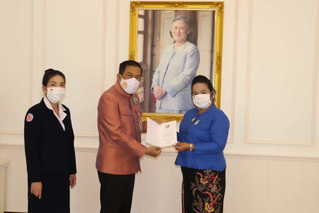 แก่ผู้ตัดเย็บหน้ากากอนามัยสภากาชาดไทย ณ บ้านพักผู้ว่าราชการจังหวัดตรัง อำเภอเมือง จังหวัดตรัง