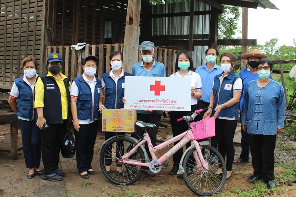 วันที่ 18 มิถุนายน 2563 นายรณภพ เหลืองไพโรจน์ ผู้ว่าราชการจังหวัดชัยนาท/นายกเหล่ากาชาดจังหวัดชัยนาท มอบหมายให้นางบำเพ็ญ ศรีโสภา รองนายกเหล่ากาชาดจังหวัดชัยนาท นางนวลนฤมล พิรุณสาร รองนายกเหล่ากาชาดจังหวัดชัยนาท คณะกรรมการและสมาชิกเหล่ากาชาดจังหวัดชัยนาท ลงพื้นที่เยี่ยมและให้กำลังใจพร้อมมอบจักรยาน