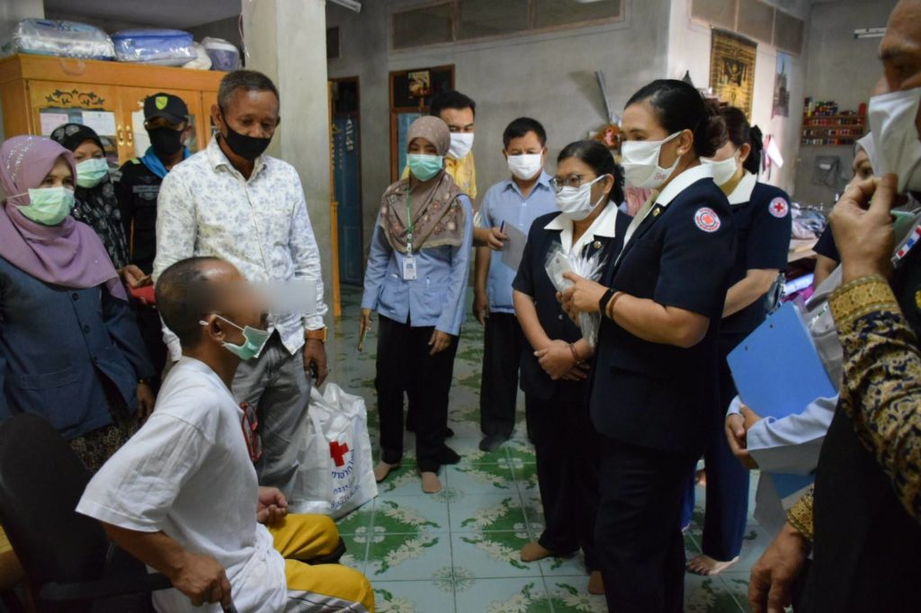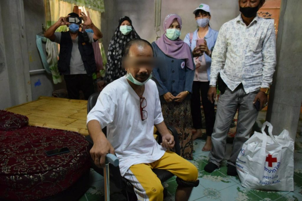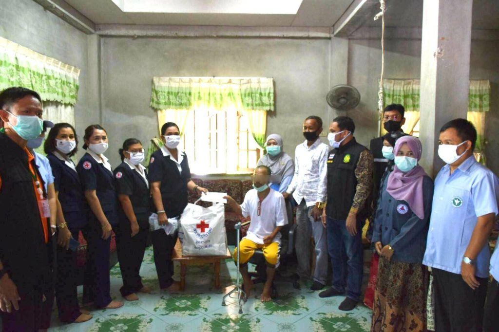 วันที่ 25 มิถุนายน 2563 นางอนุรี วิศิษฎ์วงศ์ นายกเหล่ากาชาดจังหวัดปัตตานี พร้อมด้วยรองนายกเหล่ากาชาดจังหวัดปัตตานี, คณะกรรมการและสมาชิกเหล่ากาชาดจังหวัดปัตตานี, ผู้แทนสาธารณสุขจังหวัดปัตตานี, ผู้แทนพัฒนาสังคมและความมั่นคงของมนุษย์จังหวัดปัตตานี เดินทางไปเยี่ยม นายอับดุลการิม ดอเลาะ อายุ 53 ปี ณ บ้านเลขที่ 53 หมู่ที่ 7 ตำบลนาเกตุ อำเภอโคกโพธิ์ จังหวัดปัตตานี ซึ่งป่วยเป็นโรคหลอดเลือดสมอง และกล้ามเนื้ออ่อนแรง (Stroke) โดยมี หัวหน้าส่วนราชการ, ปลัดอำเภอ, ผู้นำท้องถิ่น, ผู้นำท้องที่, อาสาสมัครสาธารณสุขประจำหมู่บ้าน และผู้ที่มีส่วนเกี่ยวข้องร่วมกิจกรรม ในการนี้ นายกเหล่ากาชาดจังหวัดปัตตานี และคณะฯ ได้สอบถามอาการ และร่วมกันมอบมอบถุงธารน้ำใจ พร้อมเงินช่วยเหลือจำนวน 1,000 บาท เพื่อบรรเทาความเดือดร้อน, มอบหน้ากากอนามัยแบบผ้า ตามโครงการจัดหาผ้าฝ้ายมัสลินที่มีตราสัญลักษณ์สภากาชาดไทย “โครงการสภากาชาดไทย ร่วมใจป้องกันภัย COVID-19 ด้วยหน้ากากอนามัยแบบผ้า” ป้องกันการแพร่ระบาดของเชื้อไวรัสโคโรนา Coronavirus (COVID-19) ตามรูปแบบที่สภากาชาดไทยกำหนดแก่คนไข้และครอบครัว พร้อมให้คำแนะนำปรับเปลี่ยนวิถีการดำรงชีวิต และเลือกรับประทานอาหารที่มีประโยชน์ หลีกเลี่ยงอาหารที่มีปริมาณโซเดียมและไขมันอิ่มตัวสูง และคำแนะนำคนไข้ที่มีความสามารถในการตัดเย็บเสื้อผ้า ให้ถ่ายทอดวิชาความรู้ด้านการตัดเย็บเสื้อผ้าให้ภรรยา เพื่อจะได้ช่วยกันทำมาหาเลี้ยงชีพ