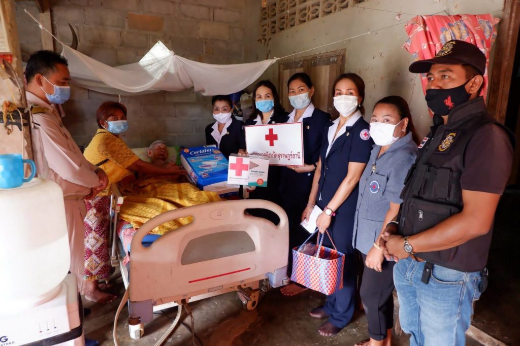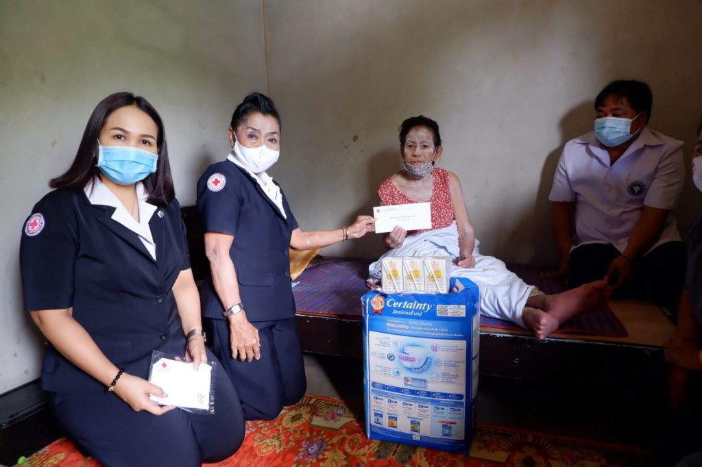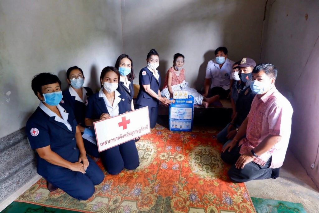 ในการนี้ เหล่ากาชาดจังหวัดสุราษฎร์ธานี ได้มอบผ้าอ้อมสำเร็จรูป และนมถั่วเหลือง ให้รายละ 1 แพ็ค พร้อมมอบเงิน ให้รายละ 3,000 บาท เพื่อเป็นขวัญกำลังใจและบรรเทาทุกข์ในเบื้องต้นด้วย พร้อมกันนี้ เหล่ากาชาดจังหวัดสุราษฎร์ธานีได้แจกหน้ากากอนามัยแบบผ้าที่มีตราสัญลักษณ์ สภากาชาดไทย Face Shield และแอลกอฮอล์ล้างมือให้กับประชาชนและ อสม. ในพื้นที่ เพื่อป้องกันการแพร่ระบาดของเชื้อไวรัสโคโรนา 2019 ด้วย