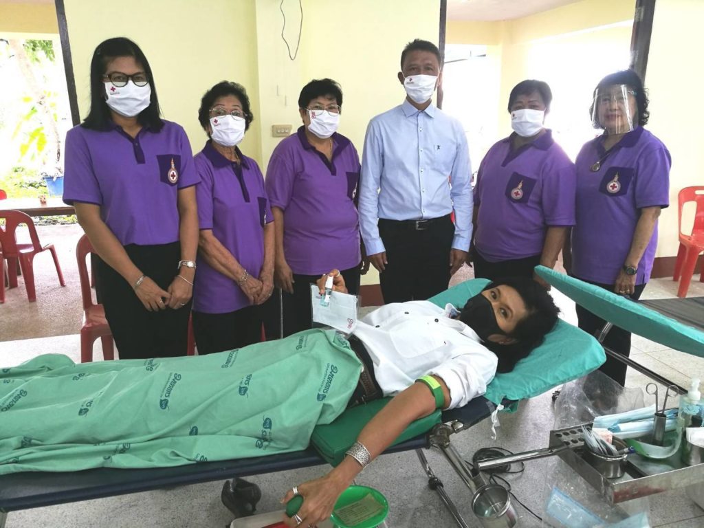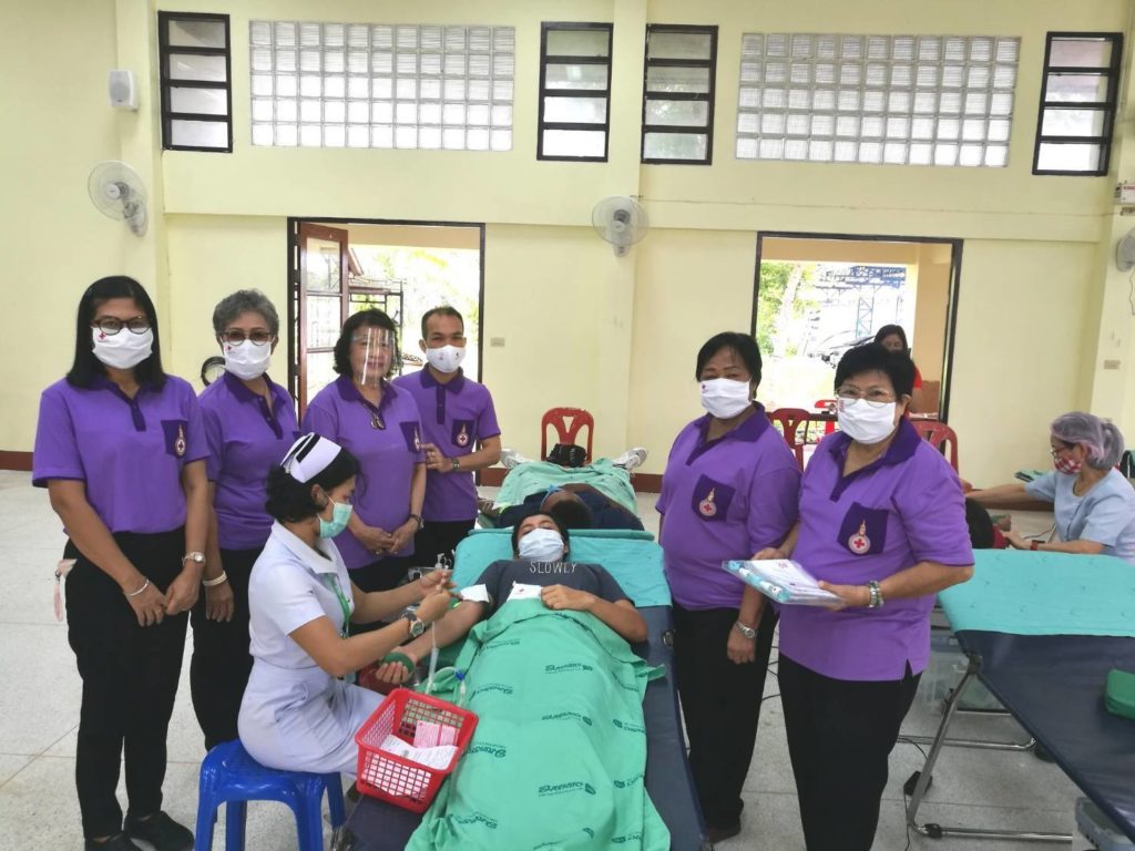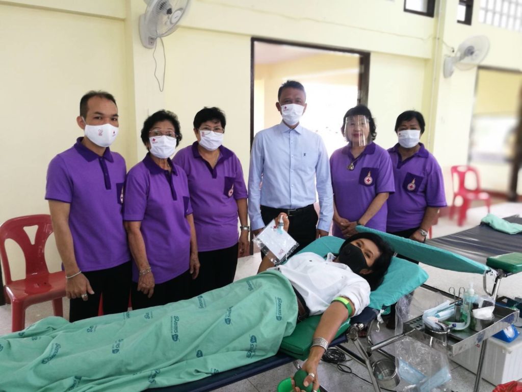 วันที่ 26 มิถุนายน 2563 นางรัติยา พัฒกุลนายกเหล่ากาชาดจังหวัดนครศรีธรรมราช มอบหมายให้คณะกรรมการเหล่ากาชาดจังหวัดนครศรีธรรมราชออกหน่วยรับบริจาคโลหิต ณ ศาลาประชาคมอำเภอเฉลิมพระเกียรติ อำเภอเฉลิมพระเกียรติ จังหวัดนครศรีธรรมราชได้โลหิต จำนวน 41 ยูนิต พร้อมมอบแอลกอฮอล์และหน้ากากอนามัยผ้าให้กับผู้บริจาคโลหิต จำนวน 100 ชิ้น
