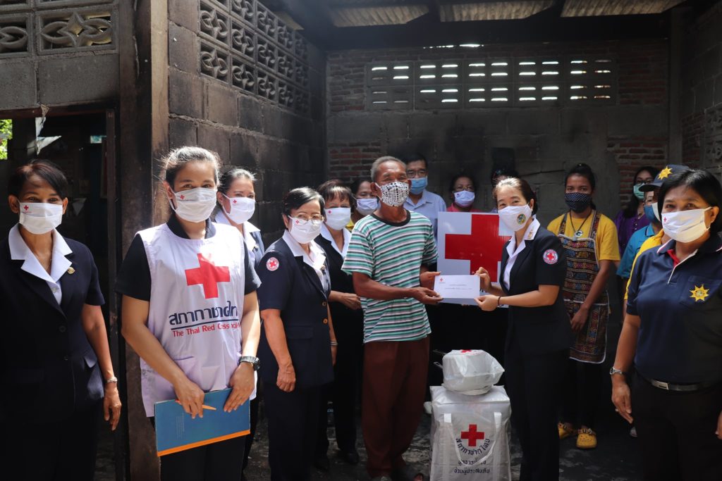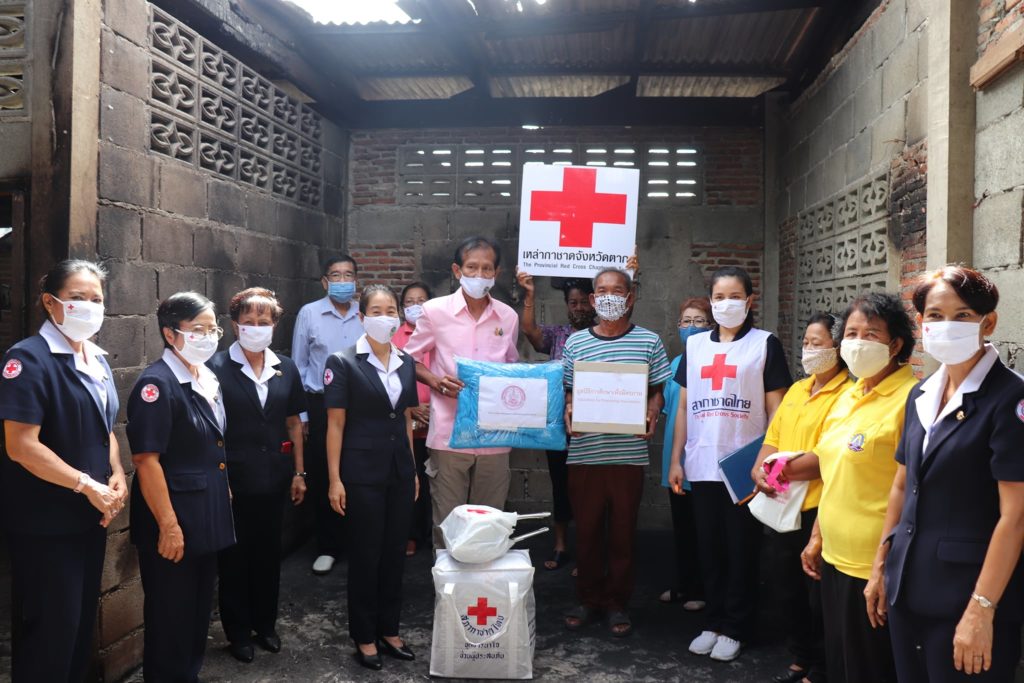 พร้อมทั้งถุงยังชีพชุดธารน้ำใจช่วยเหลือผู้ประสบอัคคีภัย จำนวน 1 ชุด และ ผ้าห่ม 1 ผืน ให้แก่ผู้ประสบอัคคีภัย