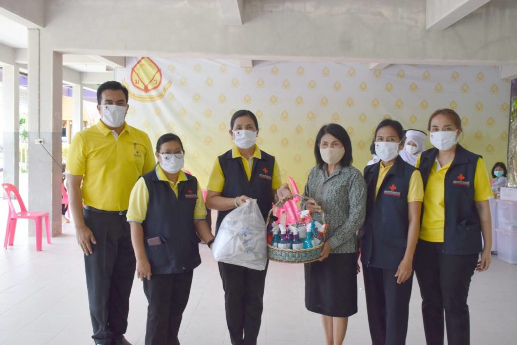จากแอลกอฮอล์ ชนิด เอทิลแอลกอฮอล์ 72% แบบสเปรย์ฉีด ขนาด 350 มิลลิลิตร จำนวน 20 ขวด และหน้ากากอนามัยแบบผ้า ตามโครงการจัดหาผ้าฝ้ายมัสลินที่มีตราสัญลักษณ์สภากาชาดไทย “โครงการสภากาชาดไทย ร่วมใจป้องกันภัย COVID-19 ด้วยหน้ากากอนามัยแบบผ้า” ป้องกันการแพร่ระบาดของเชื้อไวรัสโคโรนา Coronavirus (COVID-19) ตามรูปแบบที่สภากาชาดไทยกำหนด จำนวน 200 ชิ้น แก่เด็กนักเรียน, ครู และบุคลากรทางการศึกษาโรงเรียนแม่ลานวิทยา อำเภอแม่ลาน จังหวัดปัตตานี